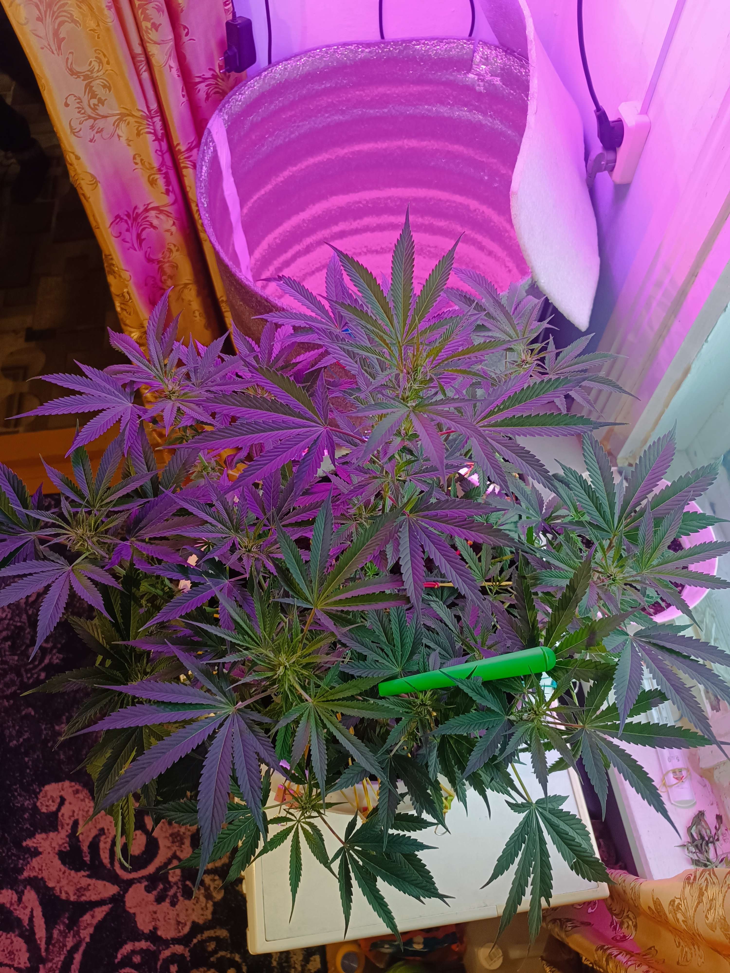 Вечером, солнышко когда заходит, уезжает жить со стиралки в этот рулон на табуретку по сутенерскую лампу) Утром на машику к окну и под эту же лампу. Он и правда в спартанских условиях растёт, без всяких приборов. Замес правда там хороший под жопой, 1.5 месяца без кормежки рос, поливается отстоенной водой, сейчас кушает Агриколу для цветущих