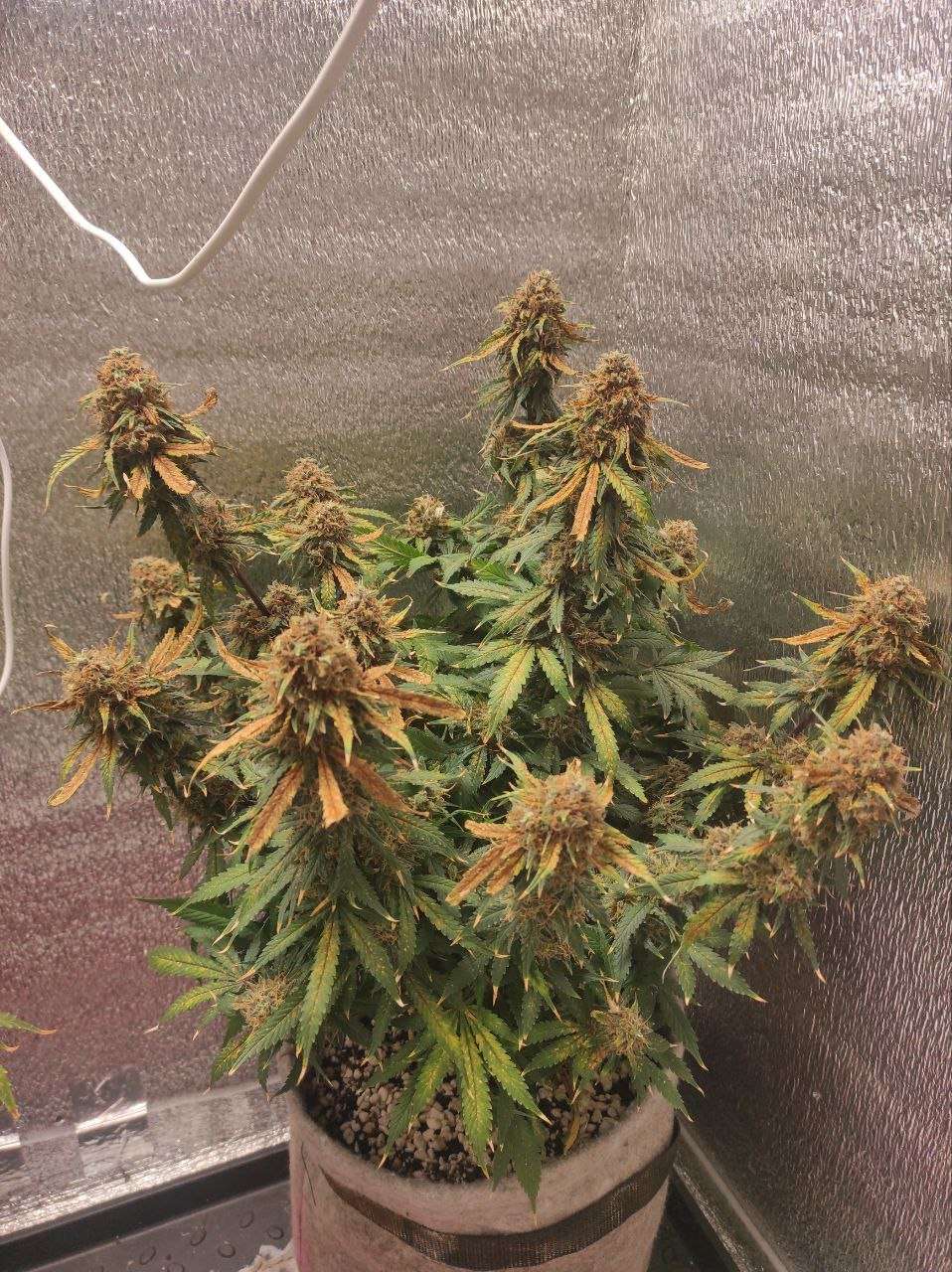 Из интересного: Tangie в последний полив показал дренаж 2000 ppm, хотя удобрения я уже неделю не даю. Очень капризный куст попался. В целом видно, что свой потенциал он раскрыл максимум на процентов 50. Но я всё равно доволен — есть крупные шишки. Думаю, грамм 40–50 сухого веса с него получится собрать.