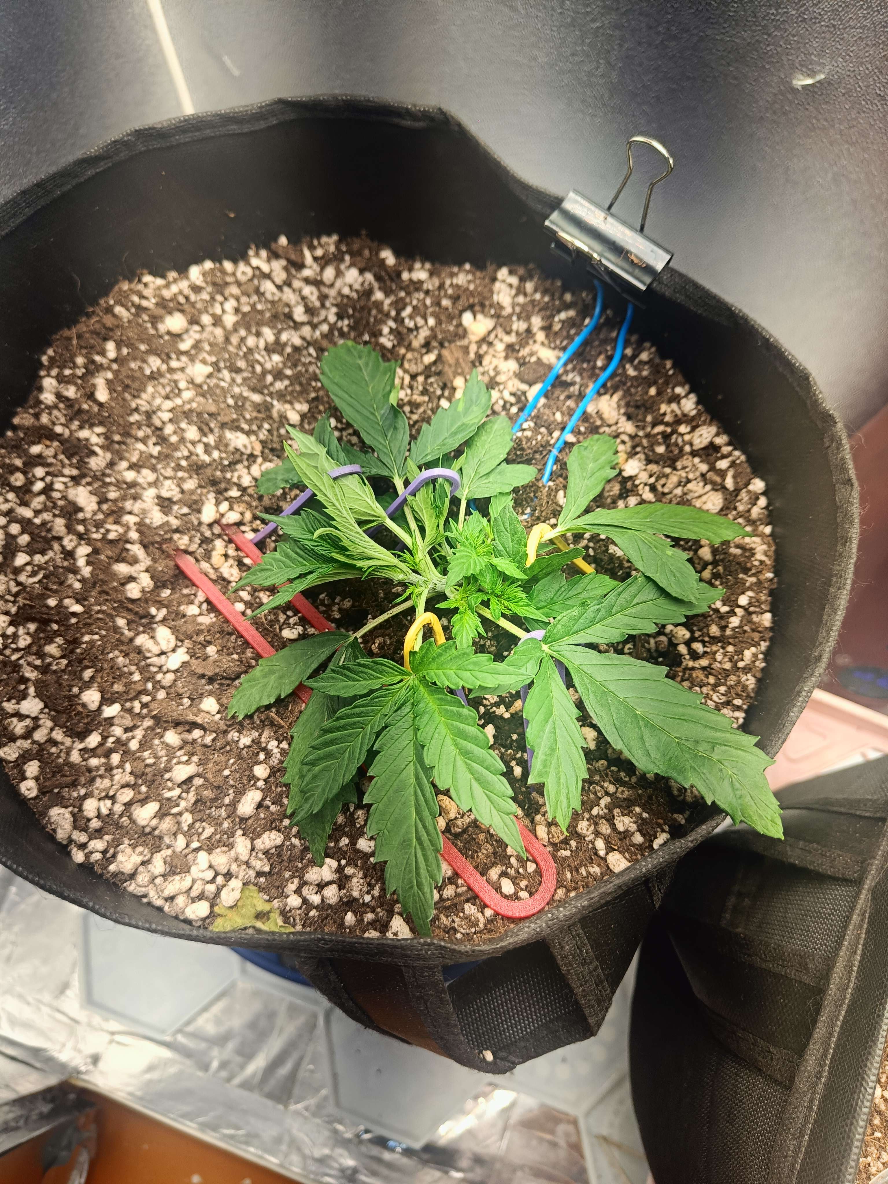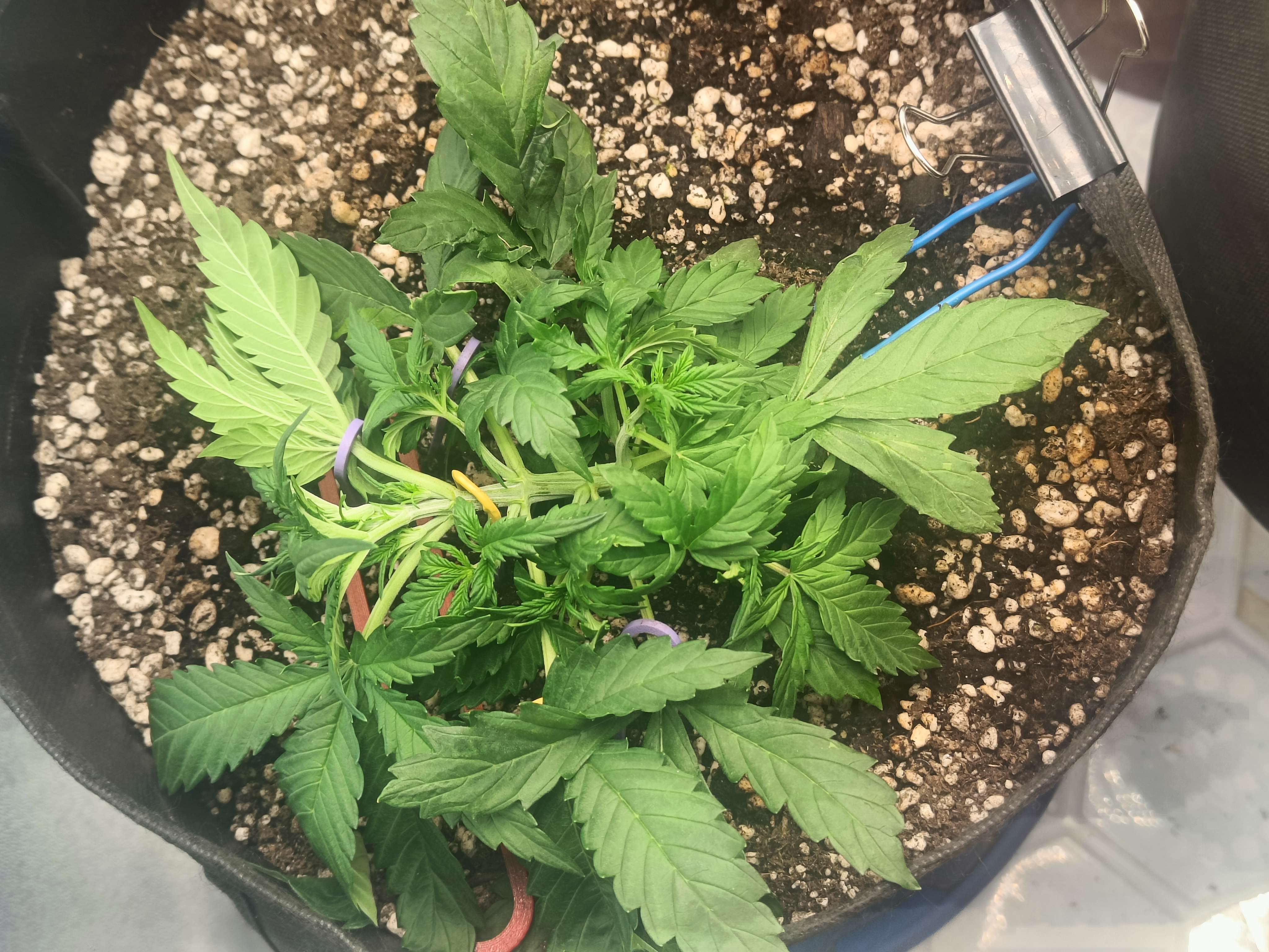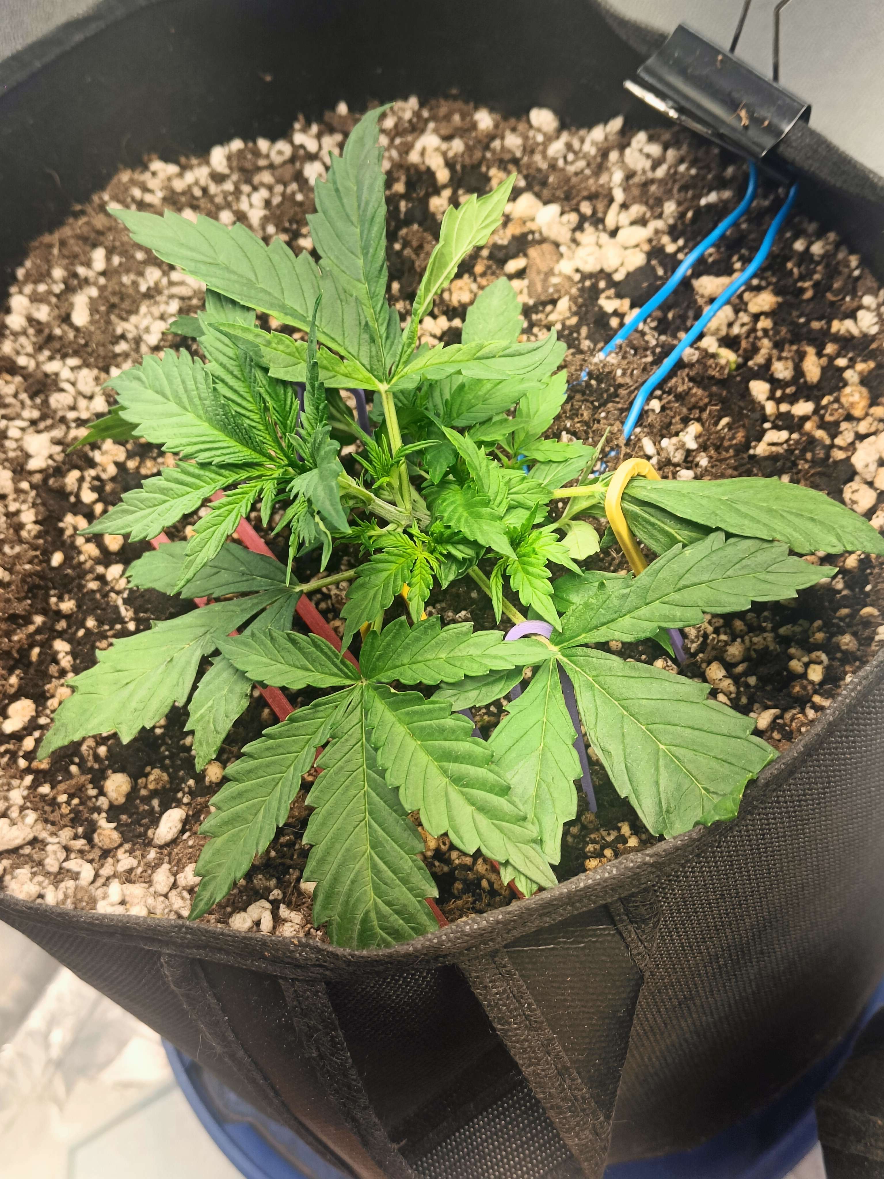 22 день (7.08) Полив 1л + t.a pro organic grow 2ml/l , немного растянул ,чтобы свет в низ попадал, включил боковые досветы , они слабенькие ,но светят, второстепенные хорошо вытянулись , и раскрылись, вообщем потихоньку идём)