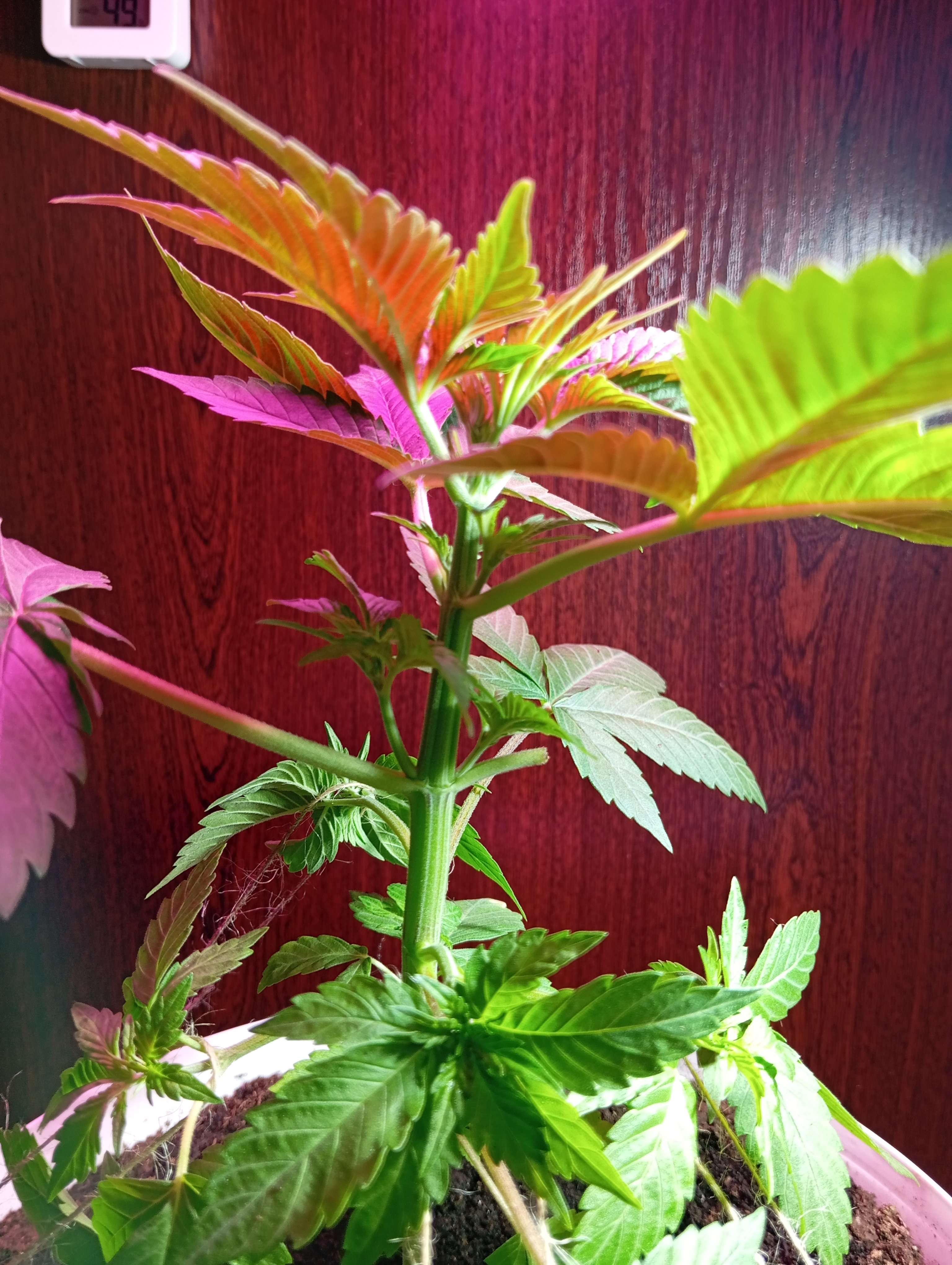 Заказал ей фитолампу в добавок к основному свету.