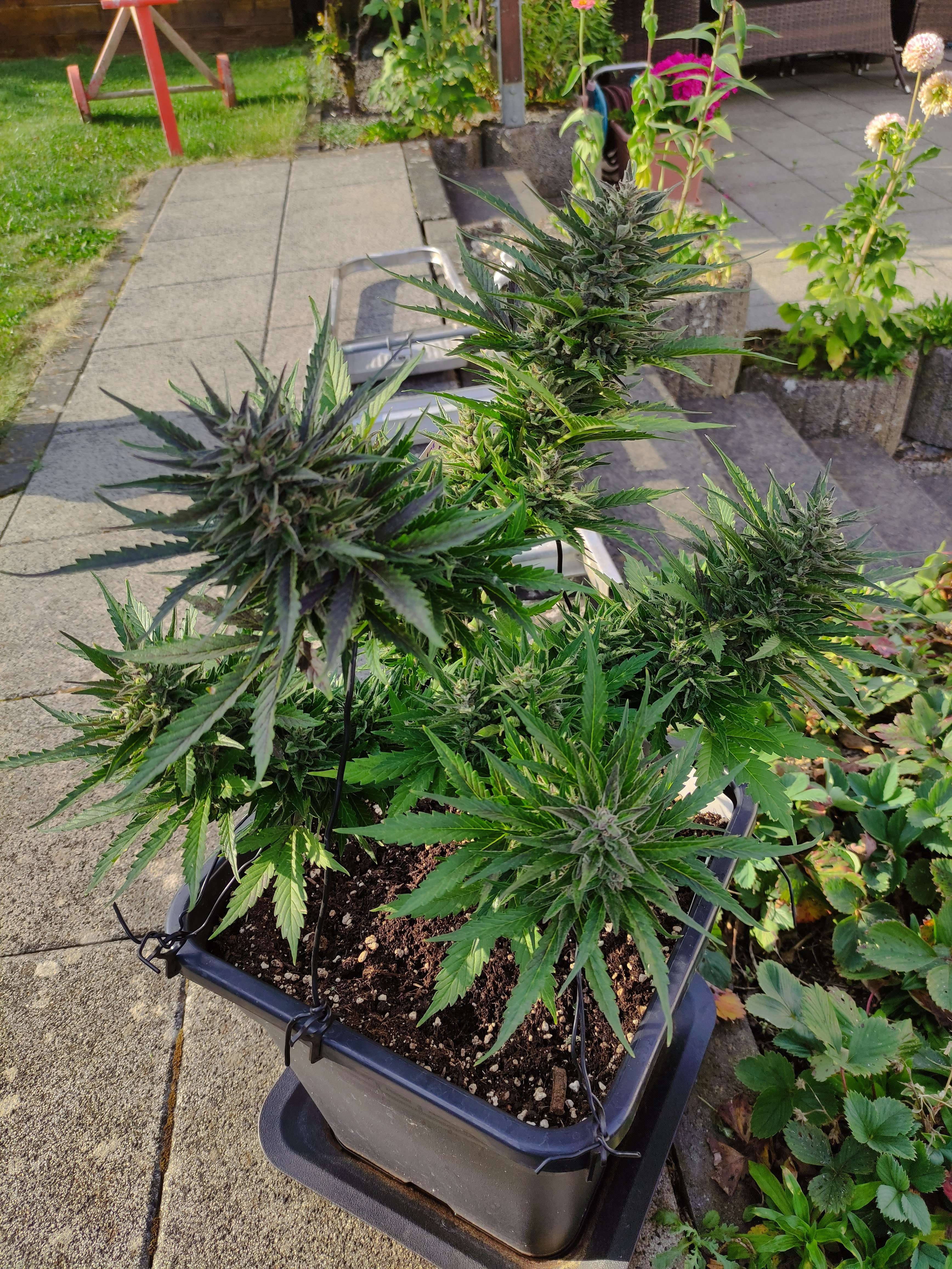 Листва зелёная и упругая, без признаков дефицитов/передоза. Темп отличный, смола наливается.