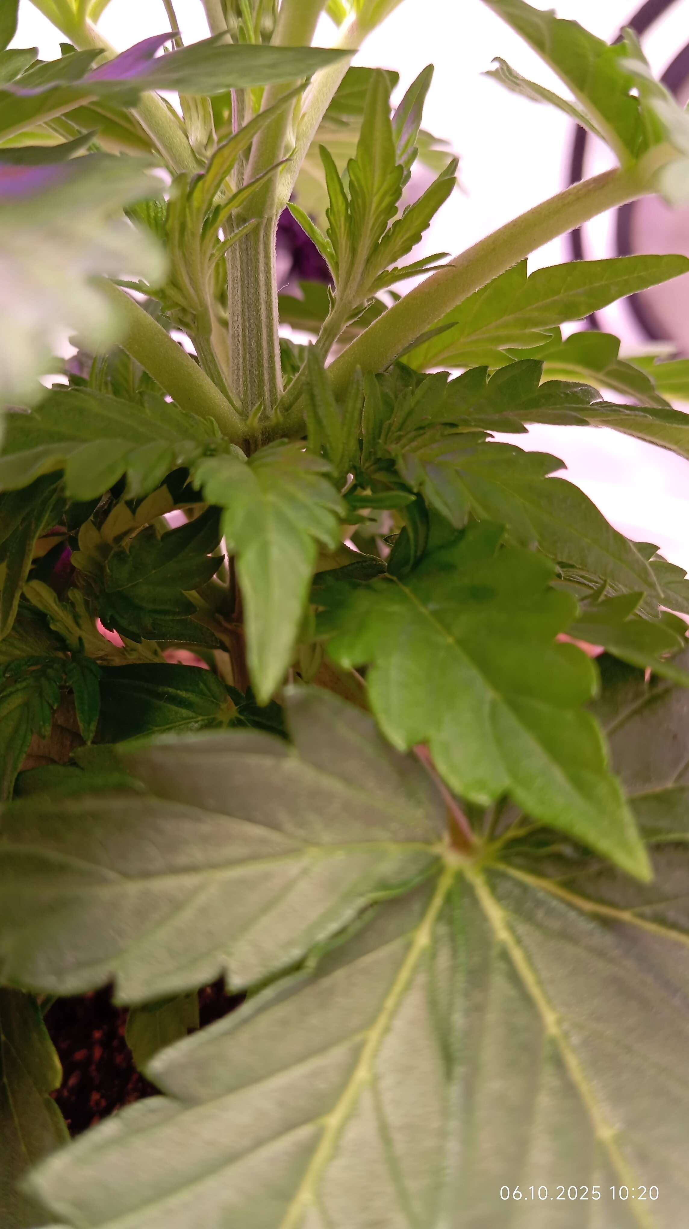 Вымахала девочка,мне кажется слишком я не светом укоротил,меж узлами коротковата,можно уже лапухи обрезать или вообще не трогать пусть растет,потом как будет варик лёгкую лст сделать