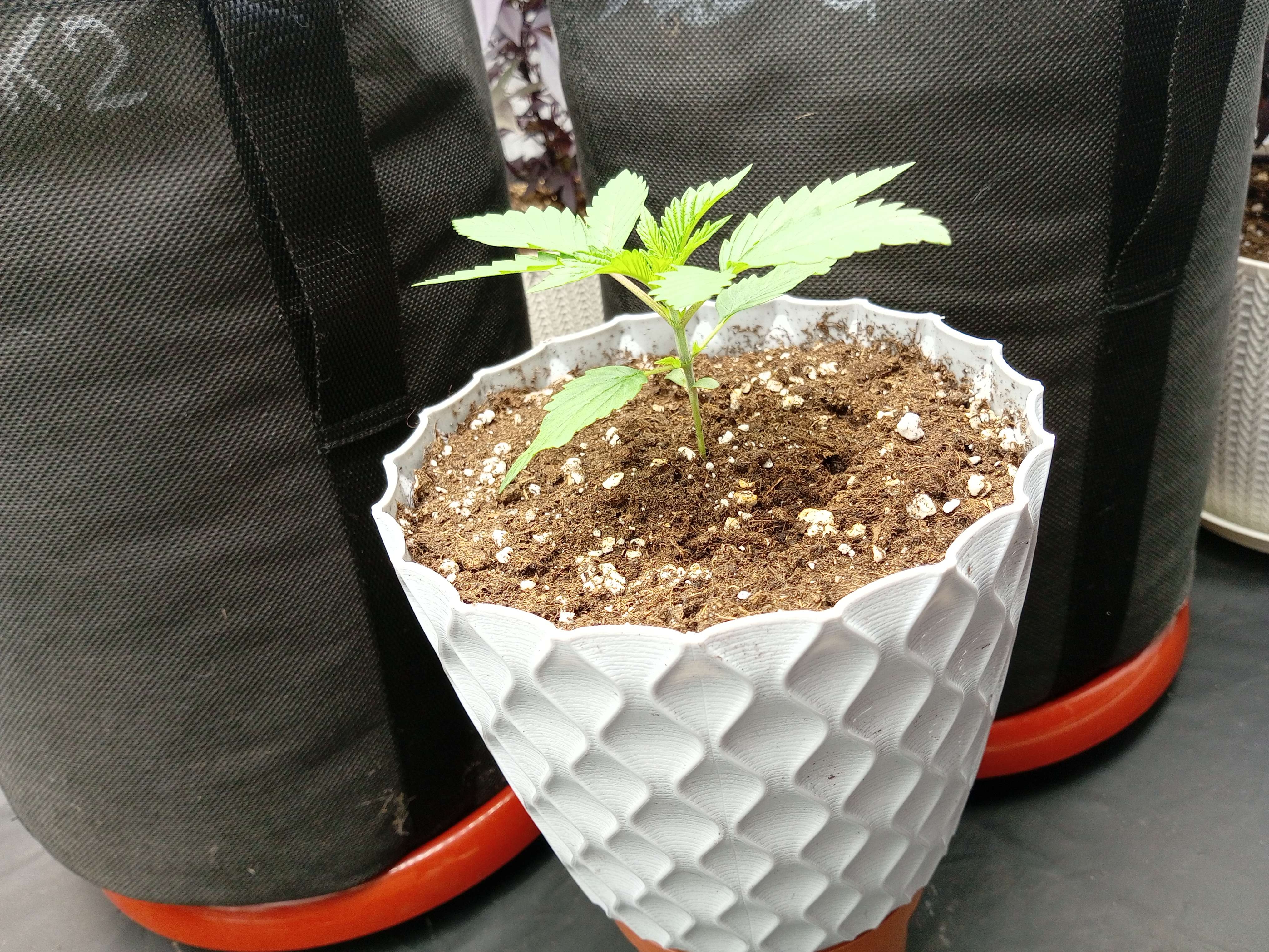 Досвидос переехал в новый горшок. Тряпичный, красивый, 20 литров. Меньше не нашлось. Думаю, этот станет для него конечным, потому что в более объемную тару я даже не представляю, как пересаживать.
