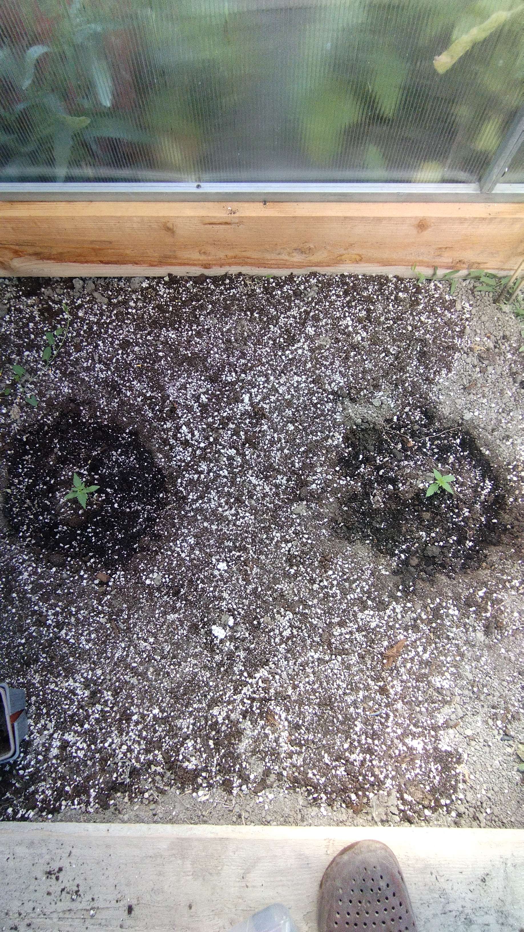 Сегодня 31 июля, 10 дней от каски, растишки высажены в грунт в теплицу. Грунт замесил самостоятельно, 50 литров покупного Терра Вита, 20 литров Биогумуса, 10 торф, 10 конский навоз покупной и 10 перлит. В общем 50/50.