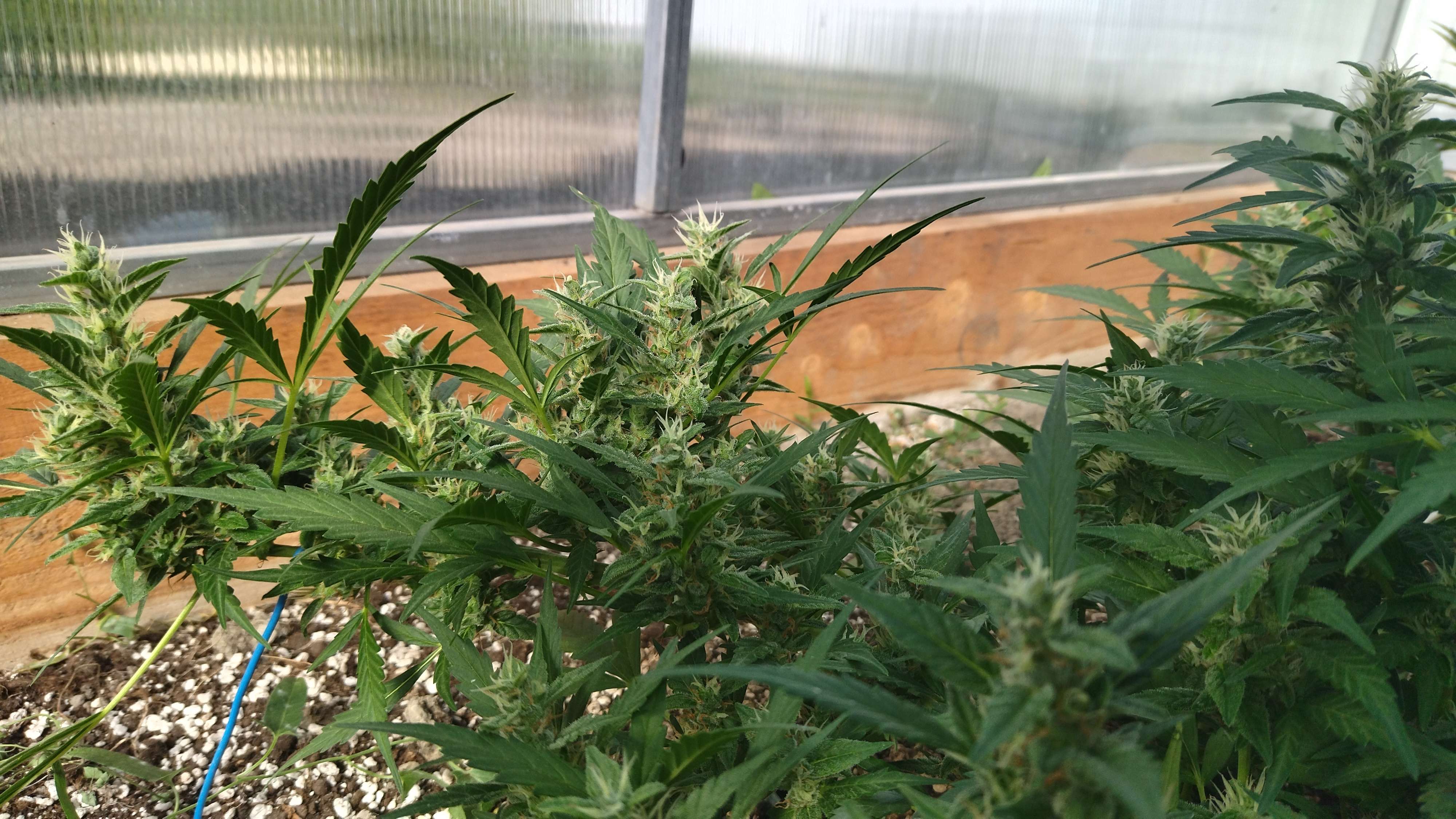 Действительно, нужно проредить немного листву, для лучшей циркуляции воздуха. Куст нормально разложен, всё верхушки макушки стоят торчкои. Солнечные дни стоят, отличная погода для аута для набора шишек. Три недели запросто до хороших трихом. А вторая Горилла малость притормаживает в росте, но процесс стабильный. По полтиннику нужно снять, это мои зимние запасы.
