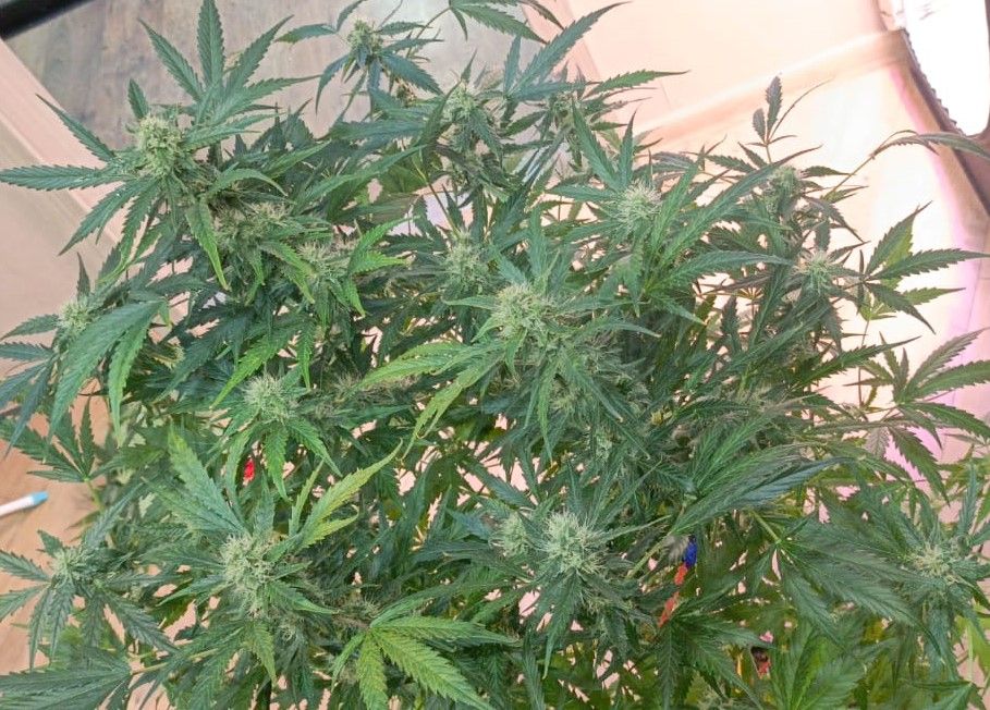 Генератор углекислого газа работает на полную, в следствии чего у растишки появился зверский аппетит. За неделю значительно прибавила в массе соцветий, трихомы стали мутными, но еще не янтарными. Некоторые стигмы покоричневели.