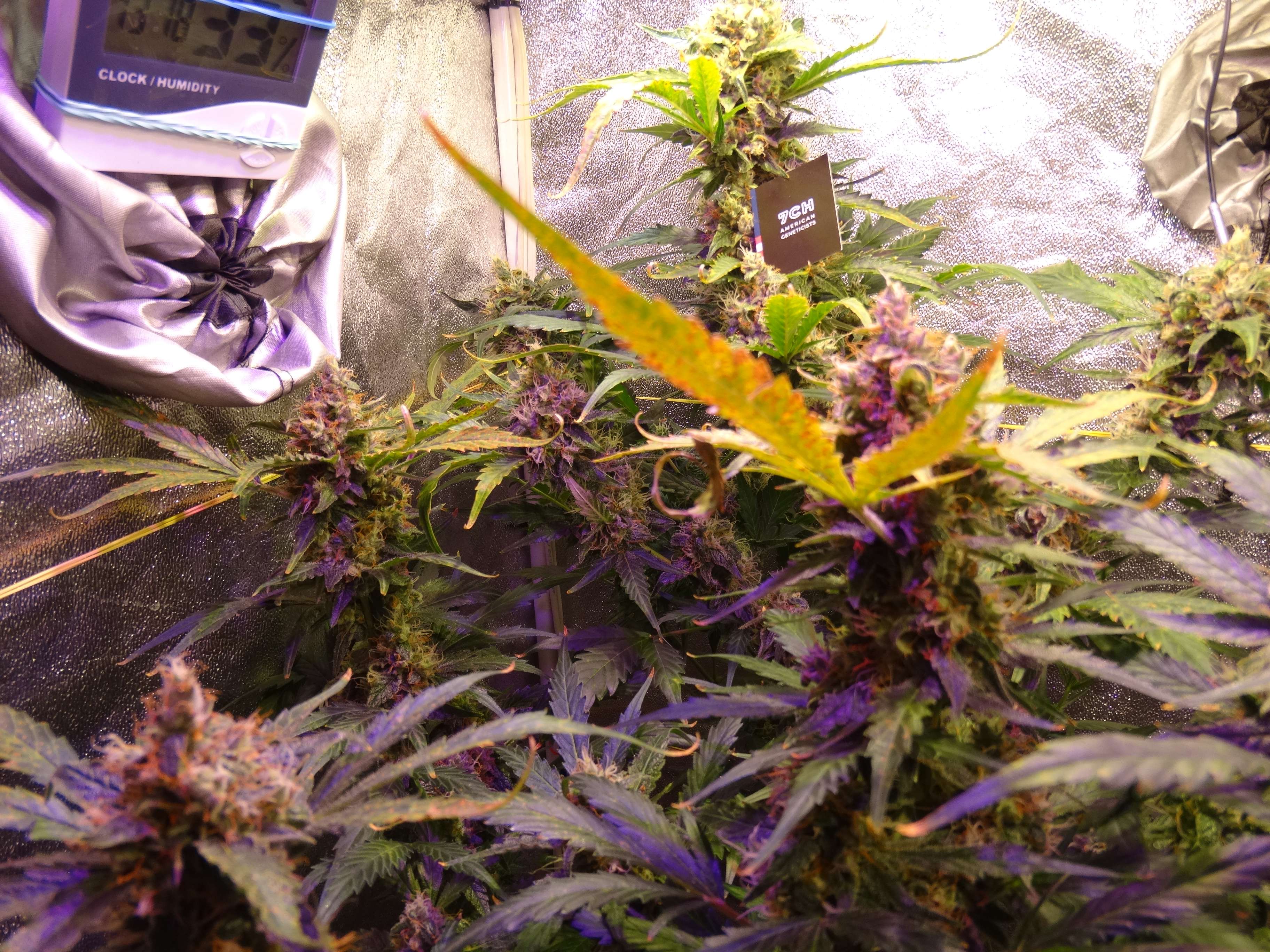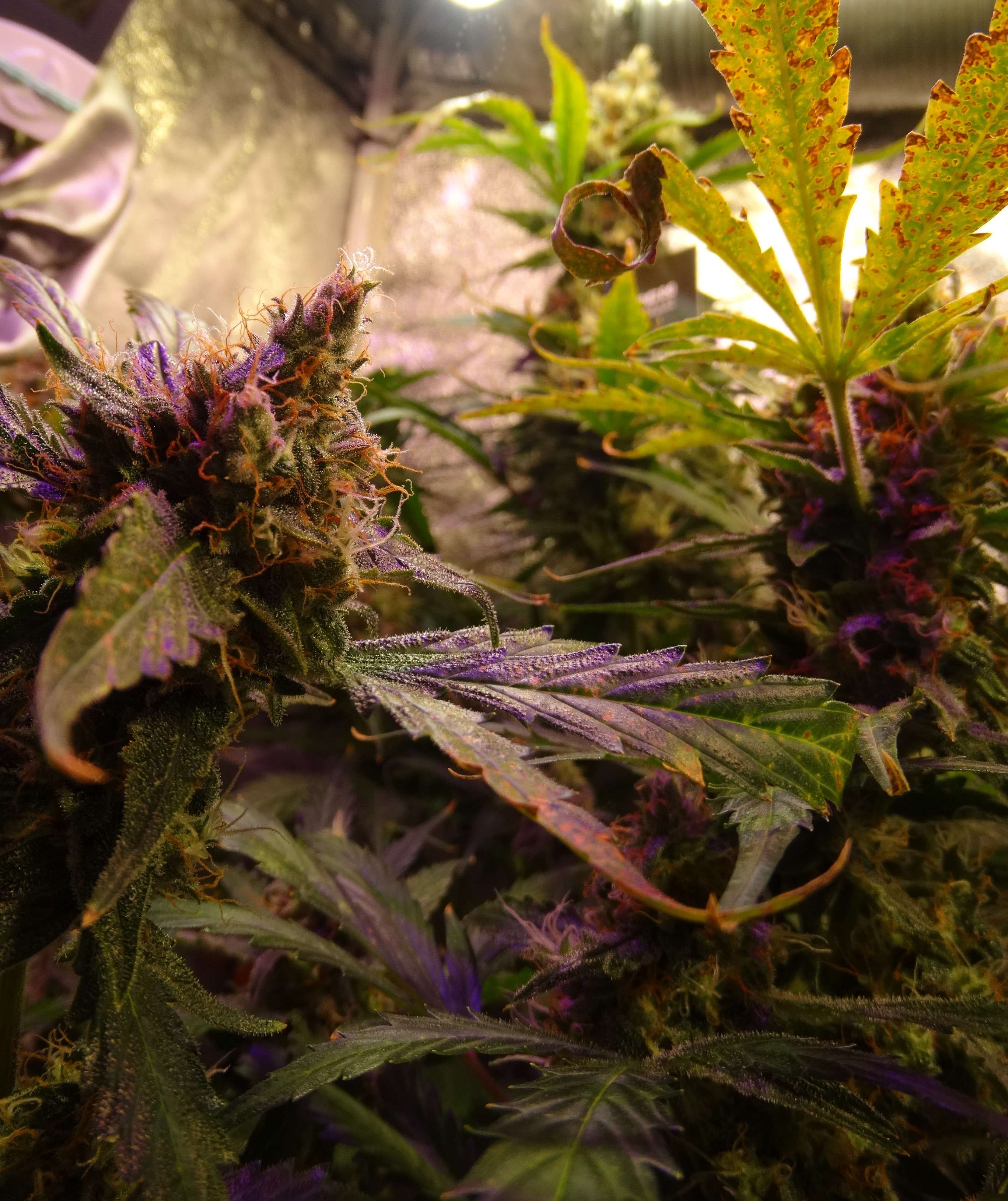 Трихомы стали янтарными, на сколько смог разглядеть, запах очень сильный. Планирую завтра срезать, ну а сегодня выключил свет и добавил лед в прикорневую зону.