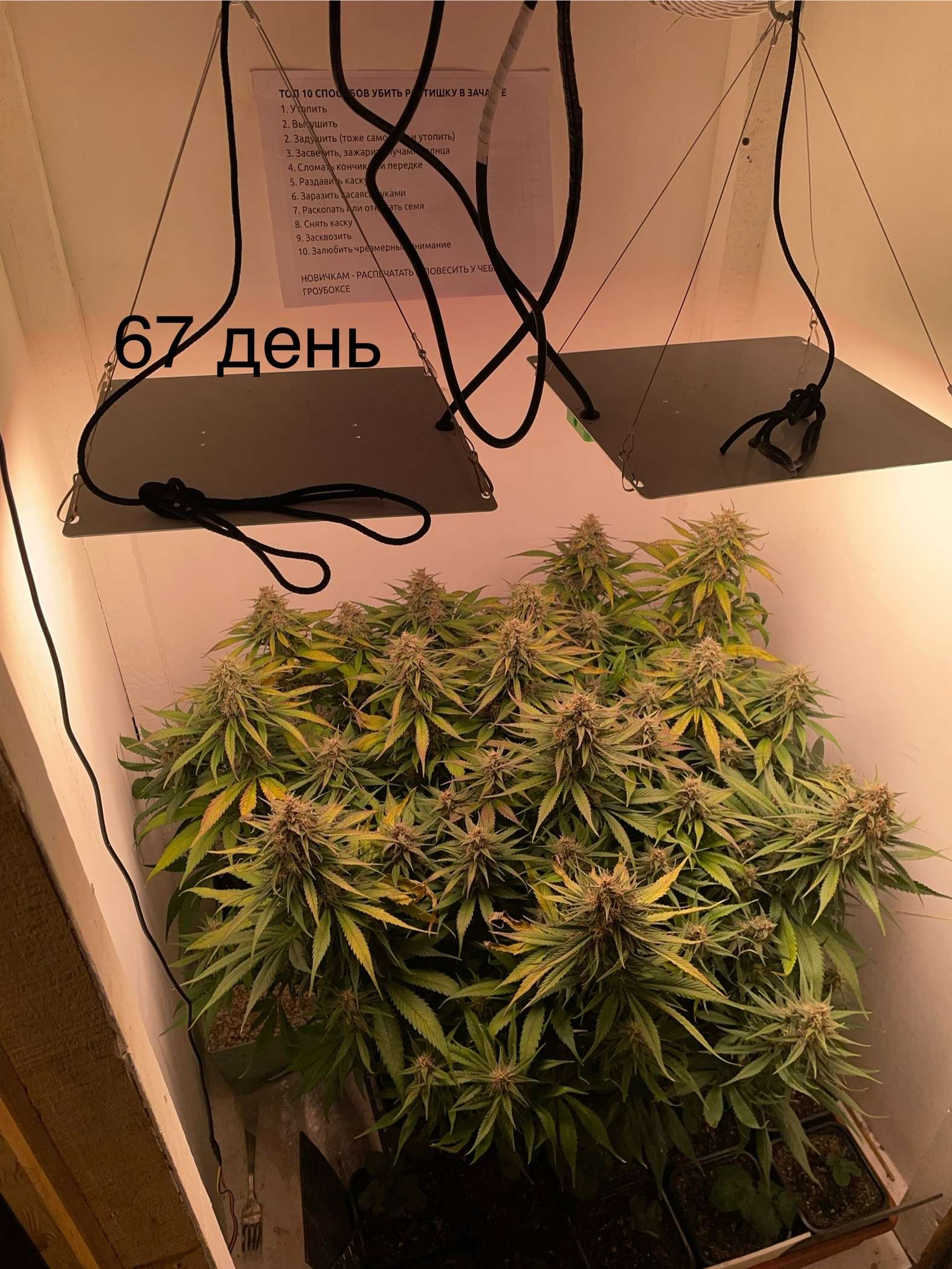 И снова здравствуйте! Сегодня лопухи все сильнее меняют цвет, думаю на этой неделе еще один полив с топ Максом, и далее чистой водой, попалась интересный «ТОП-10» и я не смог пройти мимо него, распечатал и повесил в бокс, что бы не расслаблять булки, с растихой не каких манипуляций не делал, разве что за подсохший лист подкргал, не отдала она мне его, ну как знает…..