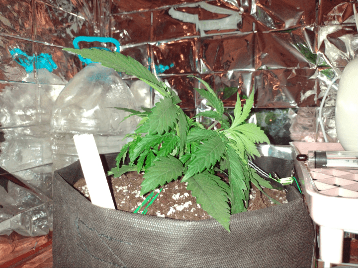 Сейчас идёт 3-я неделя, куст растёт пышный и коренастый (я его изначально светом придавил, чтоб не тянулся, у меня высота- всего 80 см минус 15см горшок🙈. Первые 2 недели зубчики листьев были под закручены вверх, они вообще у него какие-то кривые на первых листах выросли, ну и наверное от температуры его всё таки подкручивало... Теперь докупил увлажнитель+вентилятор ( очень помогло), ставлю утром перед работой 2 замороженные пятишки с водой, вечером прихожу- температура 27-29 (фух....) первые 2 недели я в панике носился с контейнерами со льдом, вентиляторами, пытался приоткрывать двери в гроубокс, постепенно , начитавшись инфы на форуме- просверлил дополнительные 2 отверстия для притока внизу, убрал пока угольный фильтр, чтоб выдув лучше шёл, поставил увлажнитель, сегодня должен прийти второй канальник на выдув (решил увеличить мощность вентиляции для борьбы с перегревом) установлю на днях и планирую повесить пакет с углекислым газом, прочитал что помогает бороться с высокой температурой- попробуем. Утром сегодня нагнул Изю, вечером продолжу, пока вроде всё хорошо, едем...