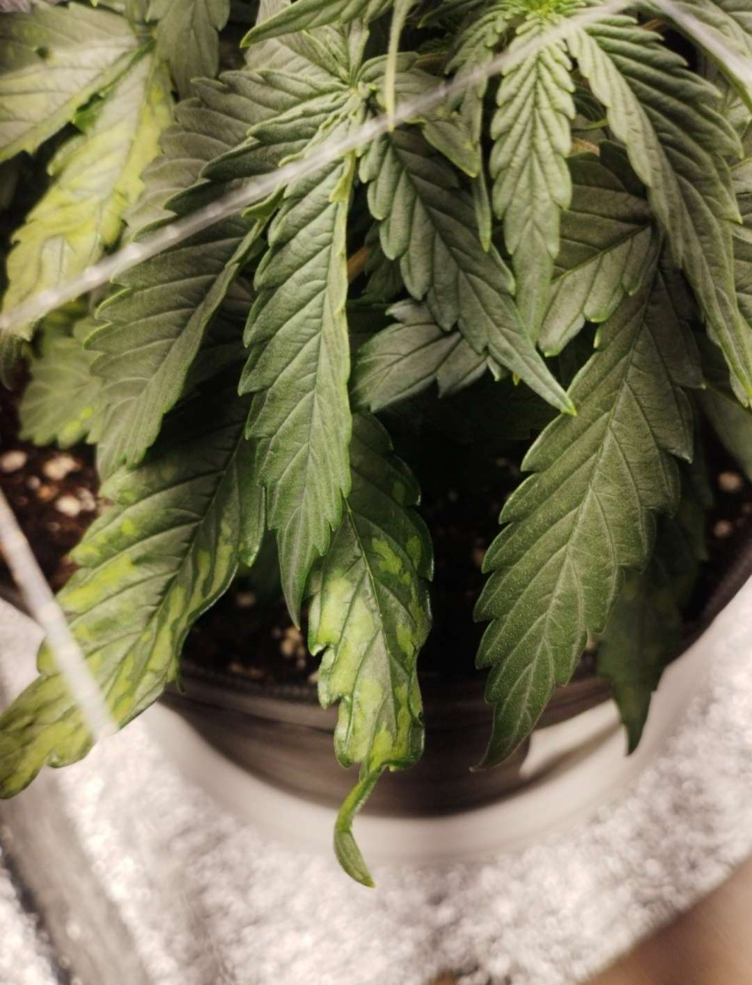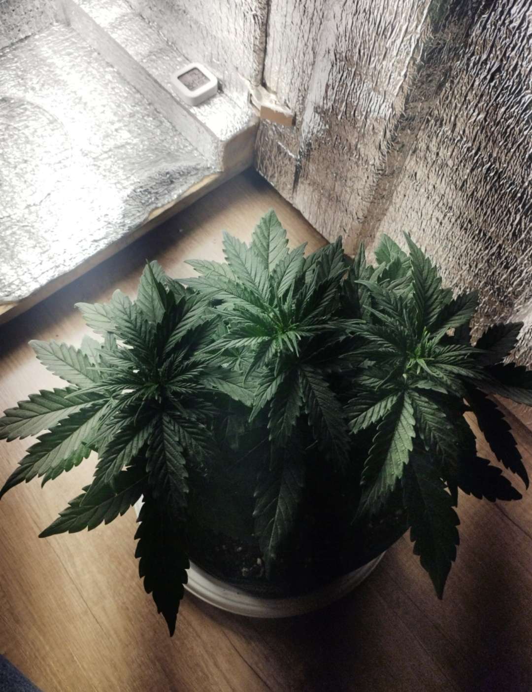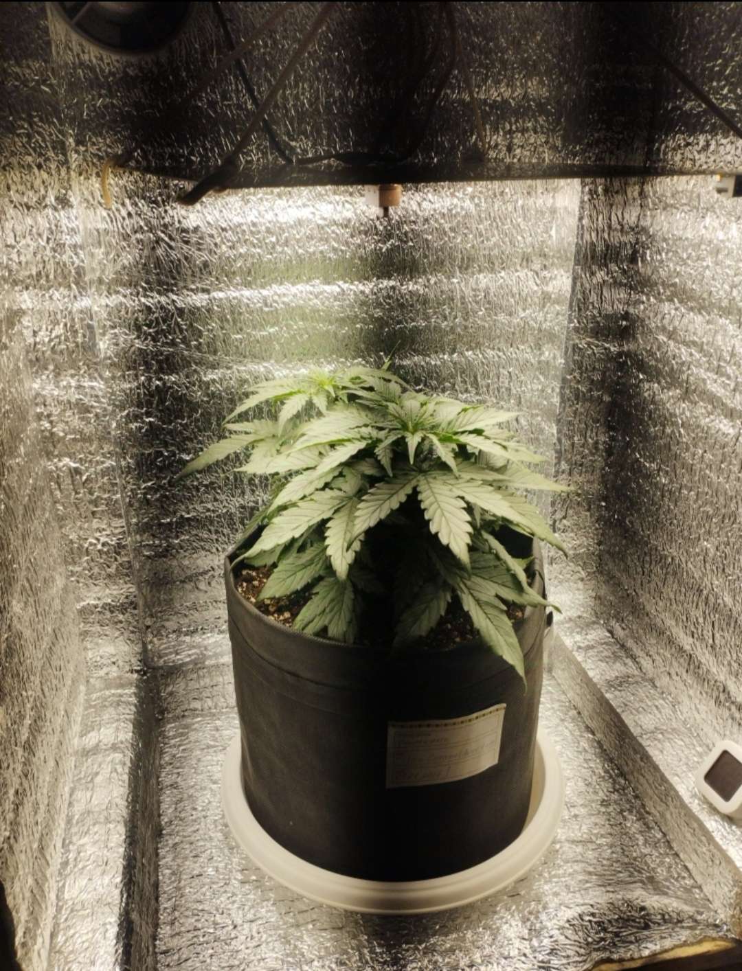 Сегодня утром полил компотом 1л с удобрами, 0.5 гроу, 0.5 микро, 0.5 блум. Так же, поднял лампу наверх почти до упора и установил скрог. Вообще, хотел сегодня чутка погнуть растишку, но видя её состояние, понятное дело, я не стал ничего делать.