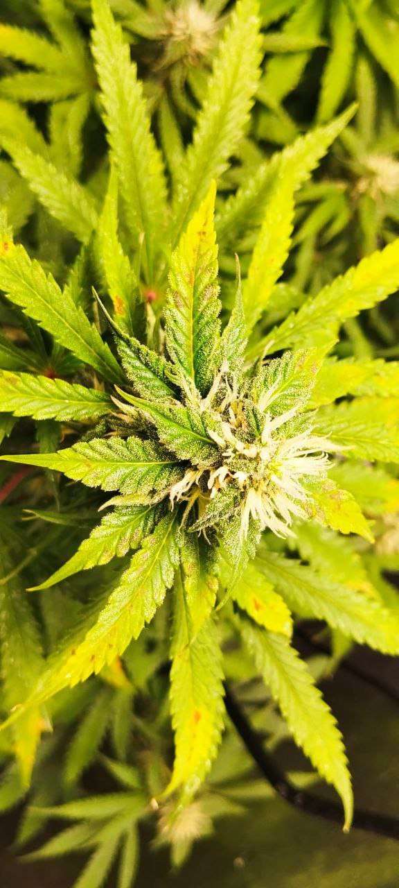 Фиолетовые черешки есть, это фосфор, пятна может микруха какая то. Калий и фосфор в любом случае нужно давать чтобы шишка пухла
