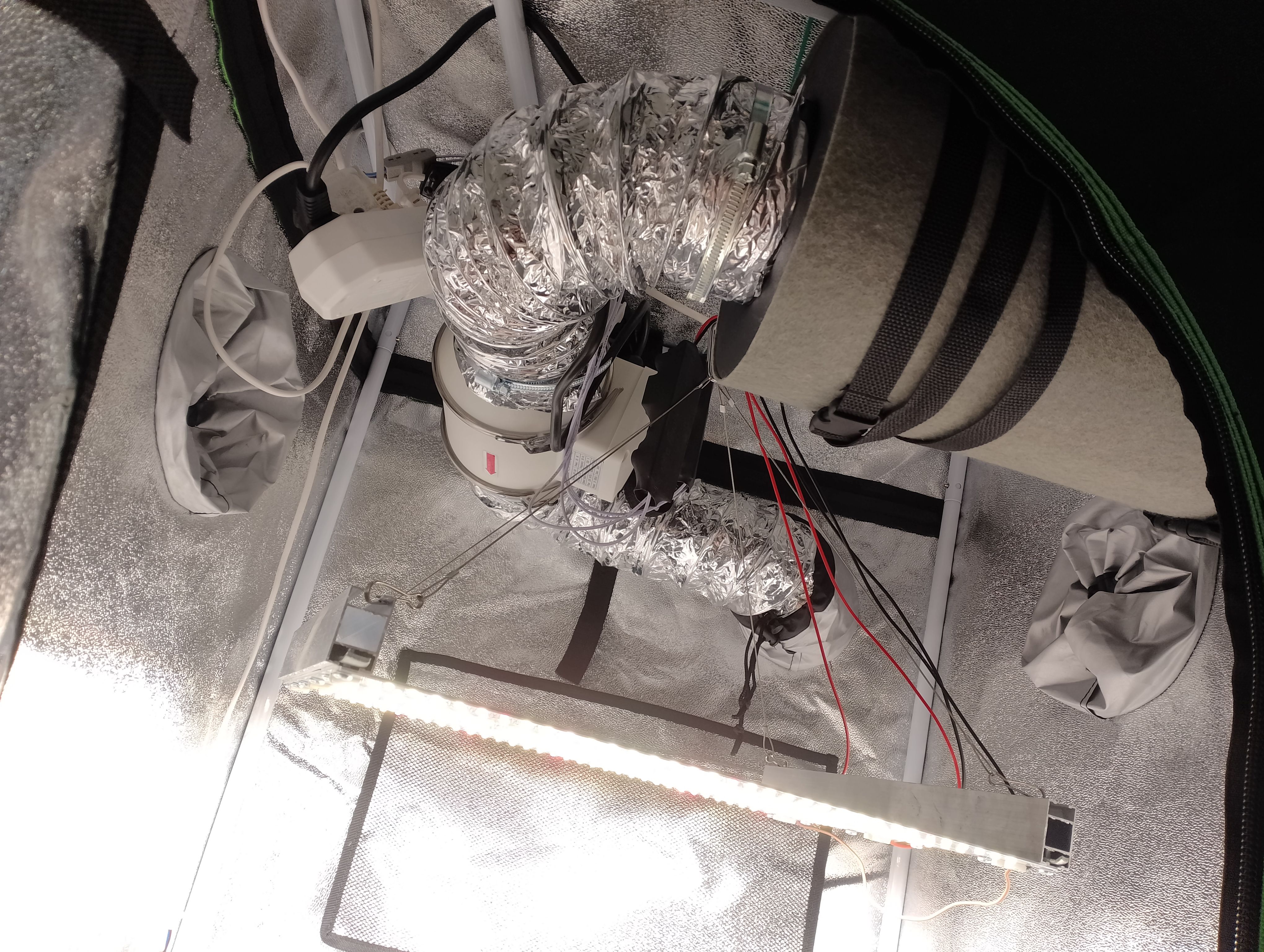 Все оборудование было куплено на сайте минифермер - вытяжка , угольник , гроутэнт , свет теперь 100 ват - докупил 2 бустера по 20 ват !