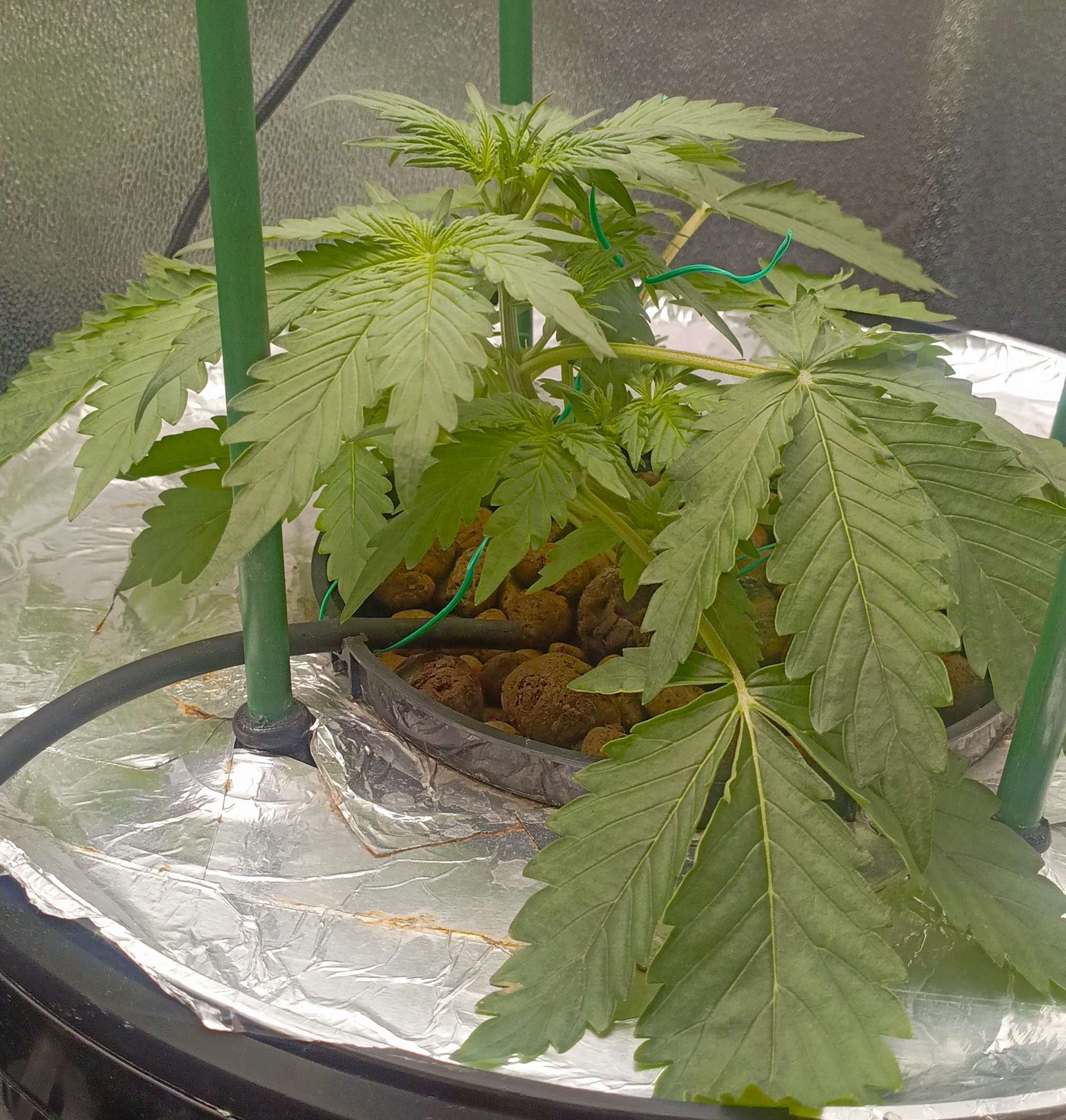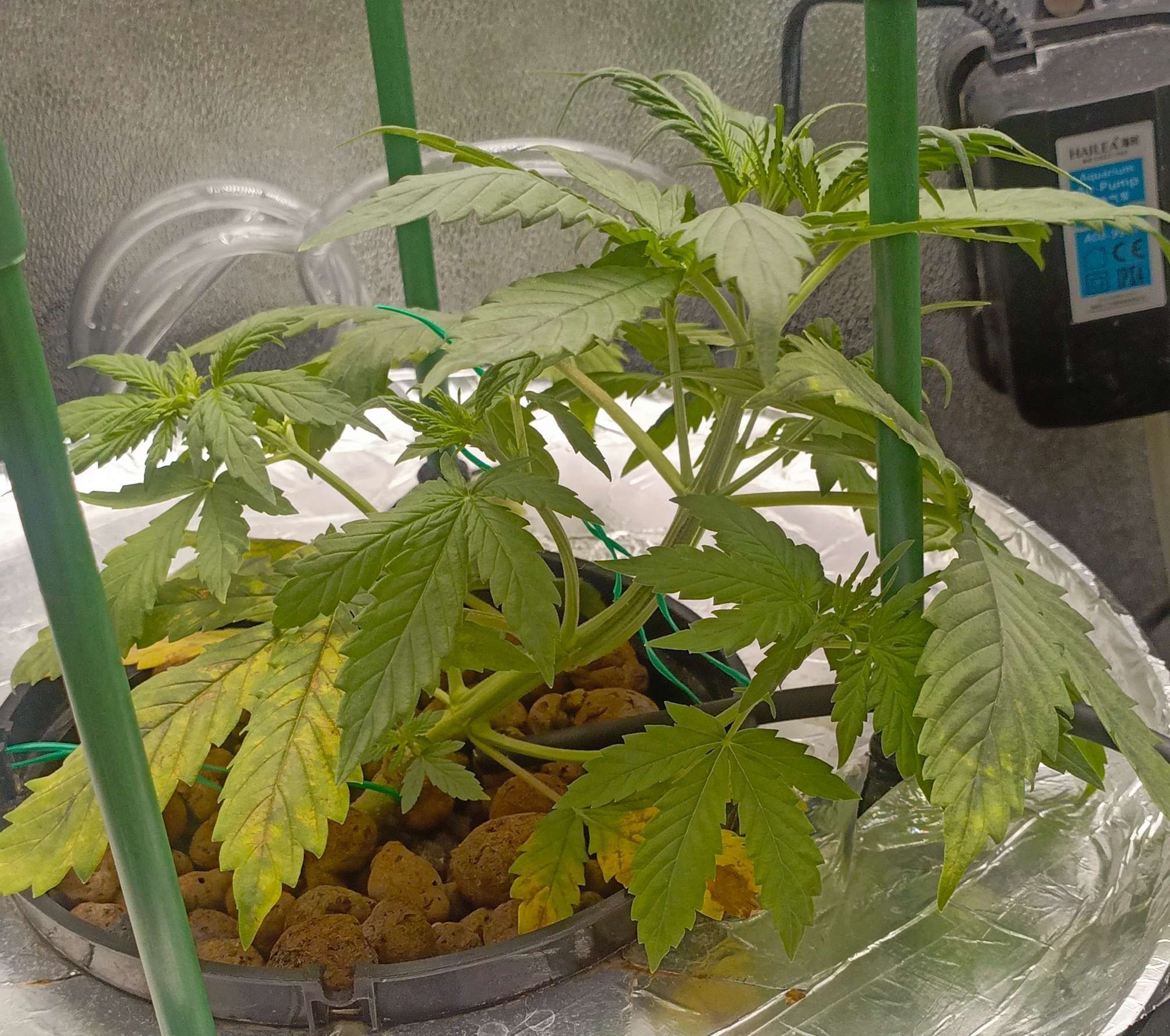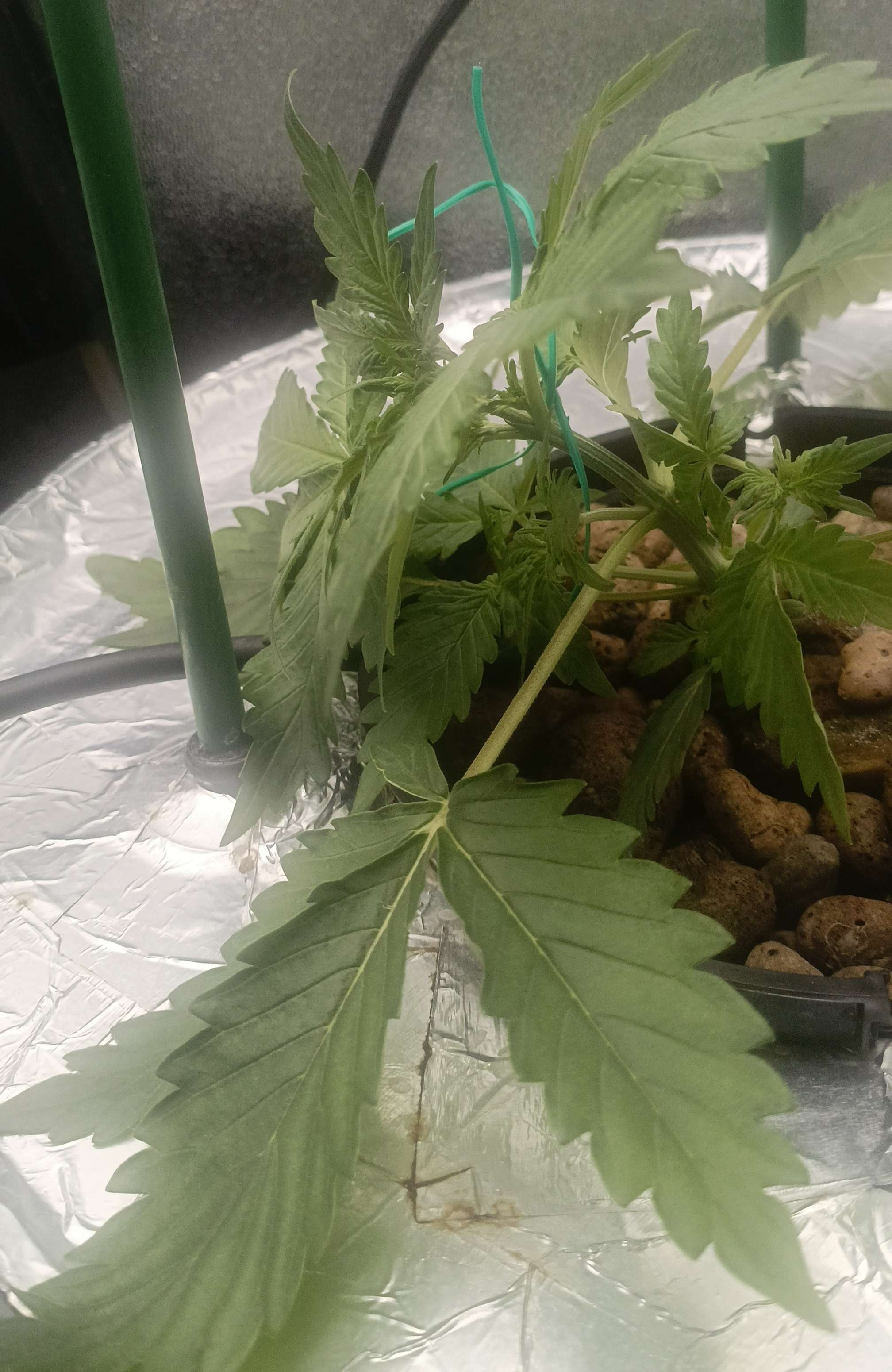Из за стресса 1 Растишка чуть пожелтела, нижний уровень, верхний был в порядке поэтому в середине недели я начал потихоньку растягивать постепенно придавая нужную форму. Освещение 25000 - 30000 люкс. Раствор делал следующий: отрегулировав воду по PH, сначала добавляю и размешиваю cal mag 1,5 мл/л, потом органику pro roots 3мл/15л, diamond nectar 2мл/л и в конце минералку gro, micro, bloom по 1мл/л. EC - 1100. Также делаю в распылитель protect 5ml/l буду опрыскивать листву. В инструкции сказано не более 3 раз за цикл, поэтому делаю немного, раз в неделю, с этой начиная буду опрыскивать листву со всех сторон.