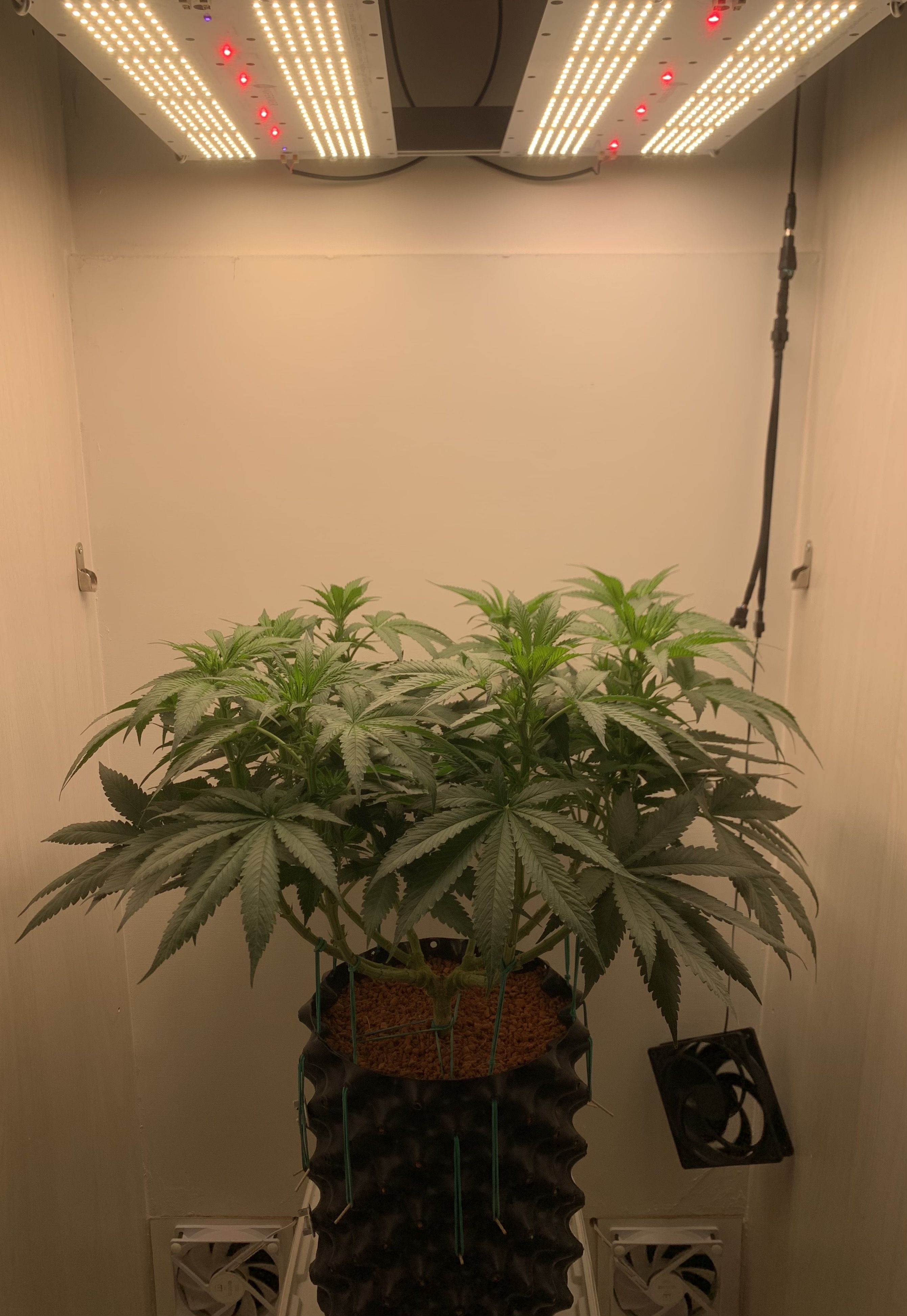 Минула первая неделя в режиме 12/12. Скоро’мелька стрельнула в рост и на 60-й день показала первые признаки зацветания. За пару дней одна половина куста выросла чуть выше, не понимаю с чем связано.. Да и пофиг, пусть уже растёт как есть. Красавица моя..