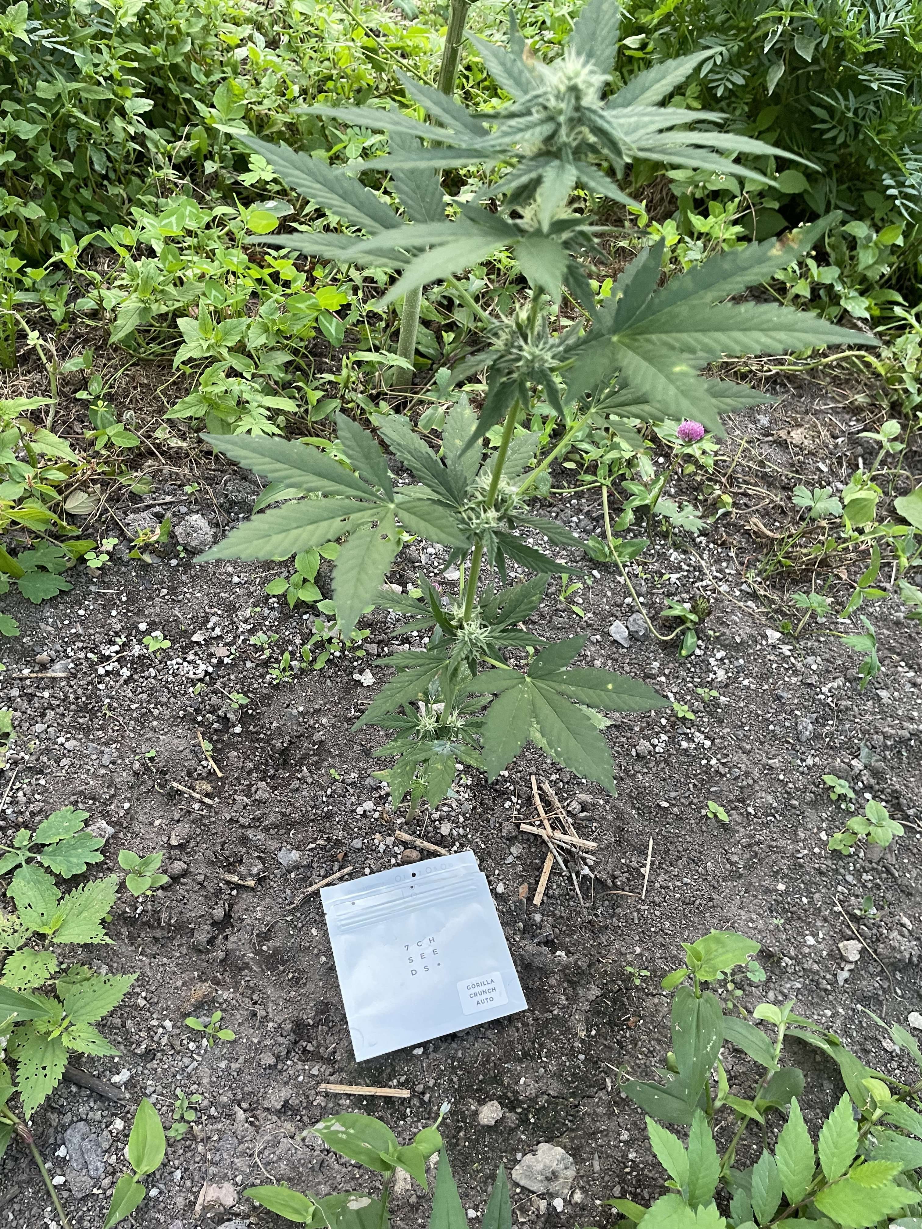 бро кажется на стадии рассады могла стрессануть и стать карликом, погодные условия типа роса и тень это не особо и стресс, обычно в ауте крепкие получаются. Может корневой там места не много... А вот те что по соседству это автики? Деревья хорошие только шишуль вроде и нету, ботва одна