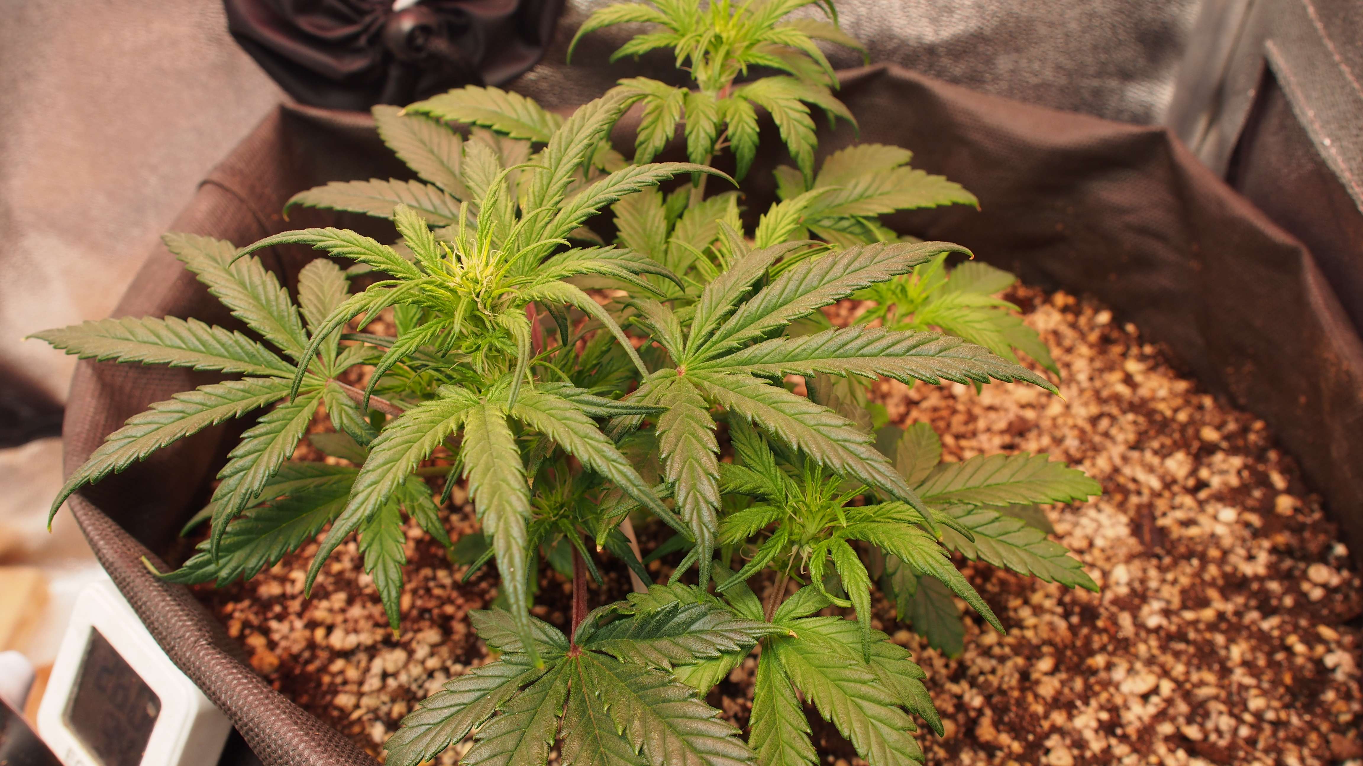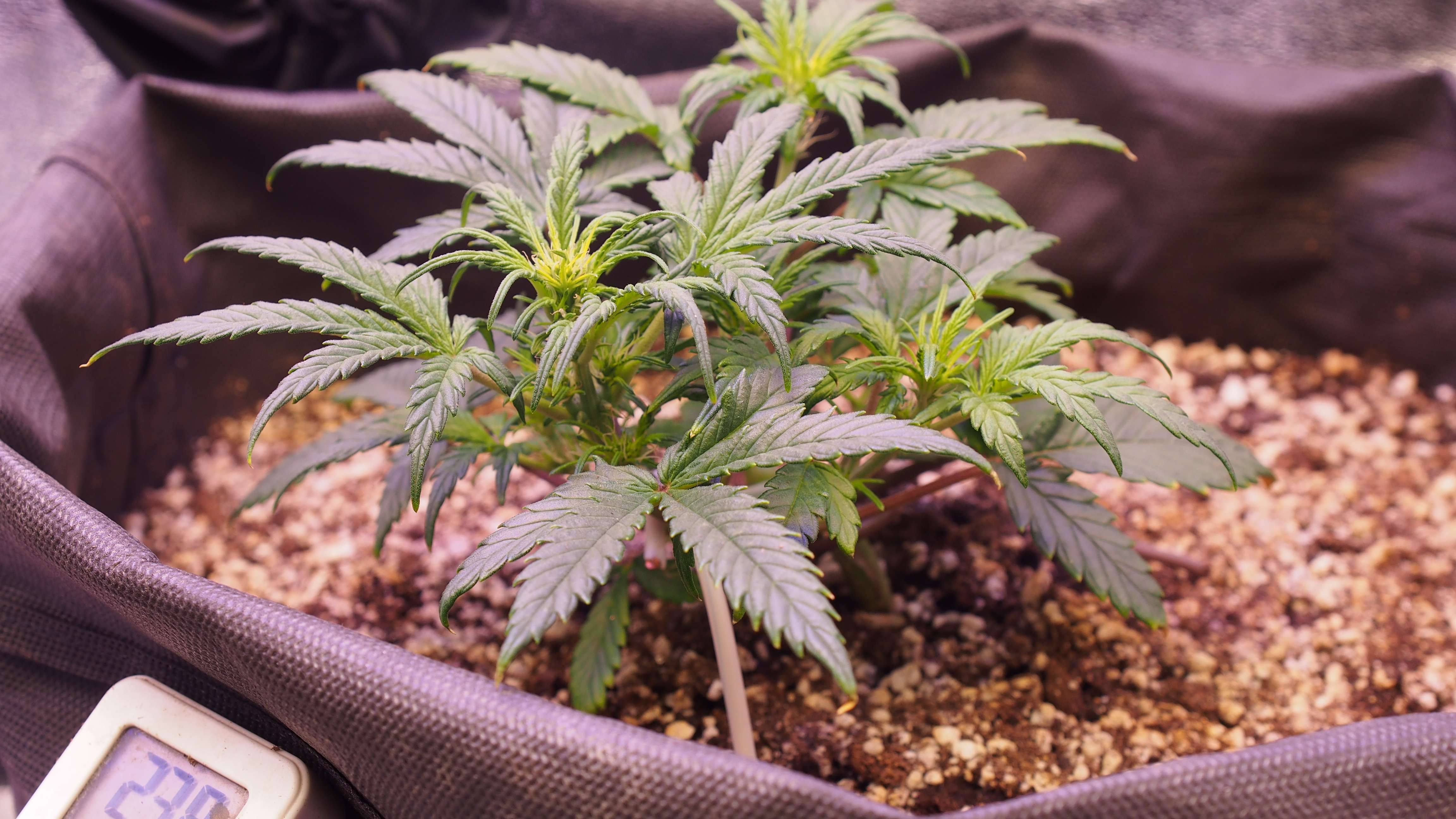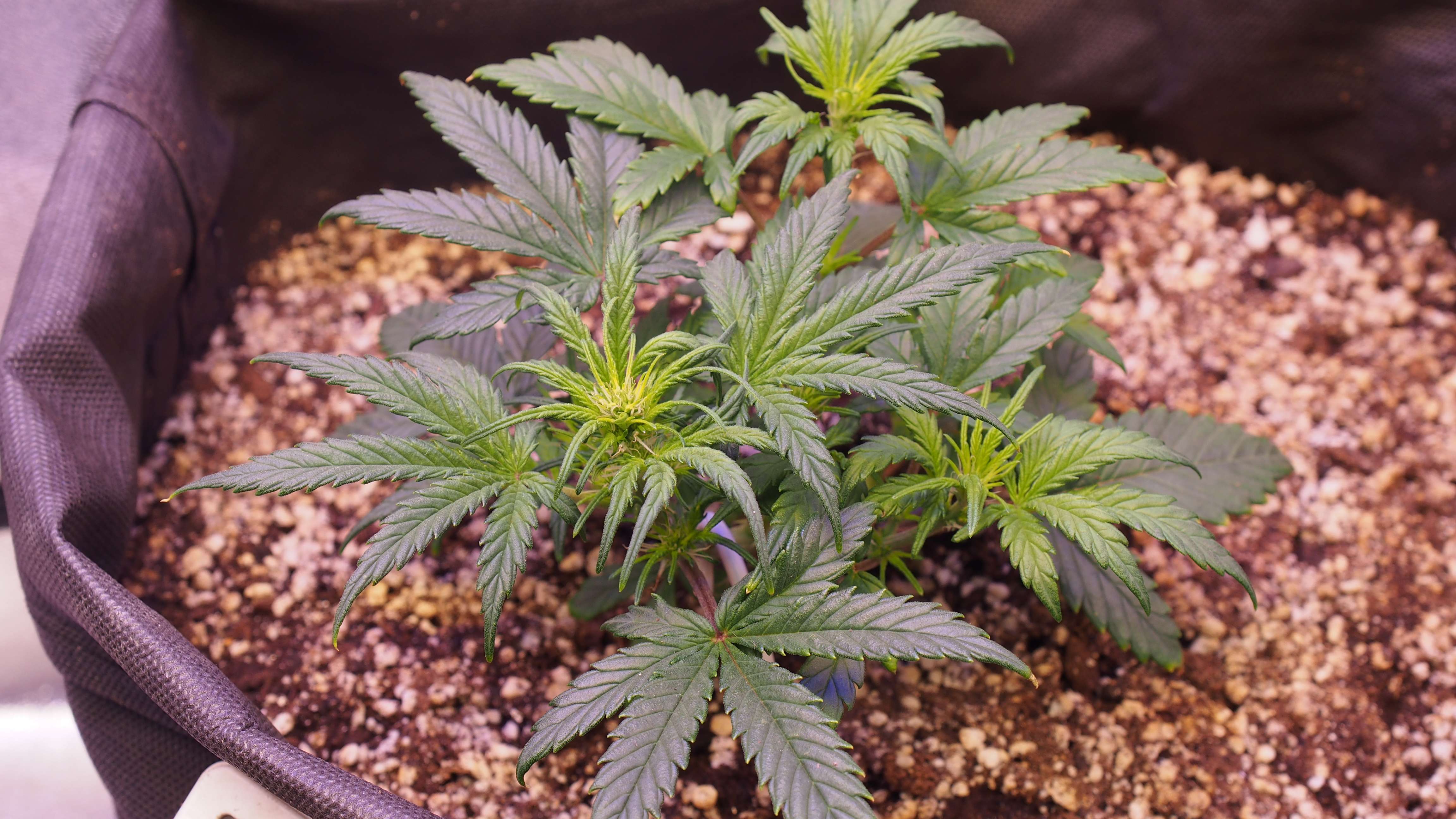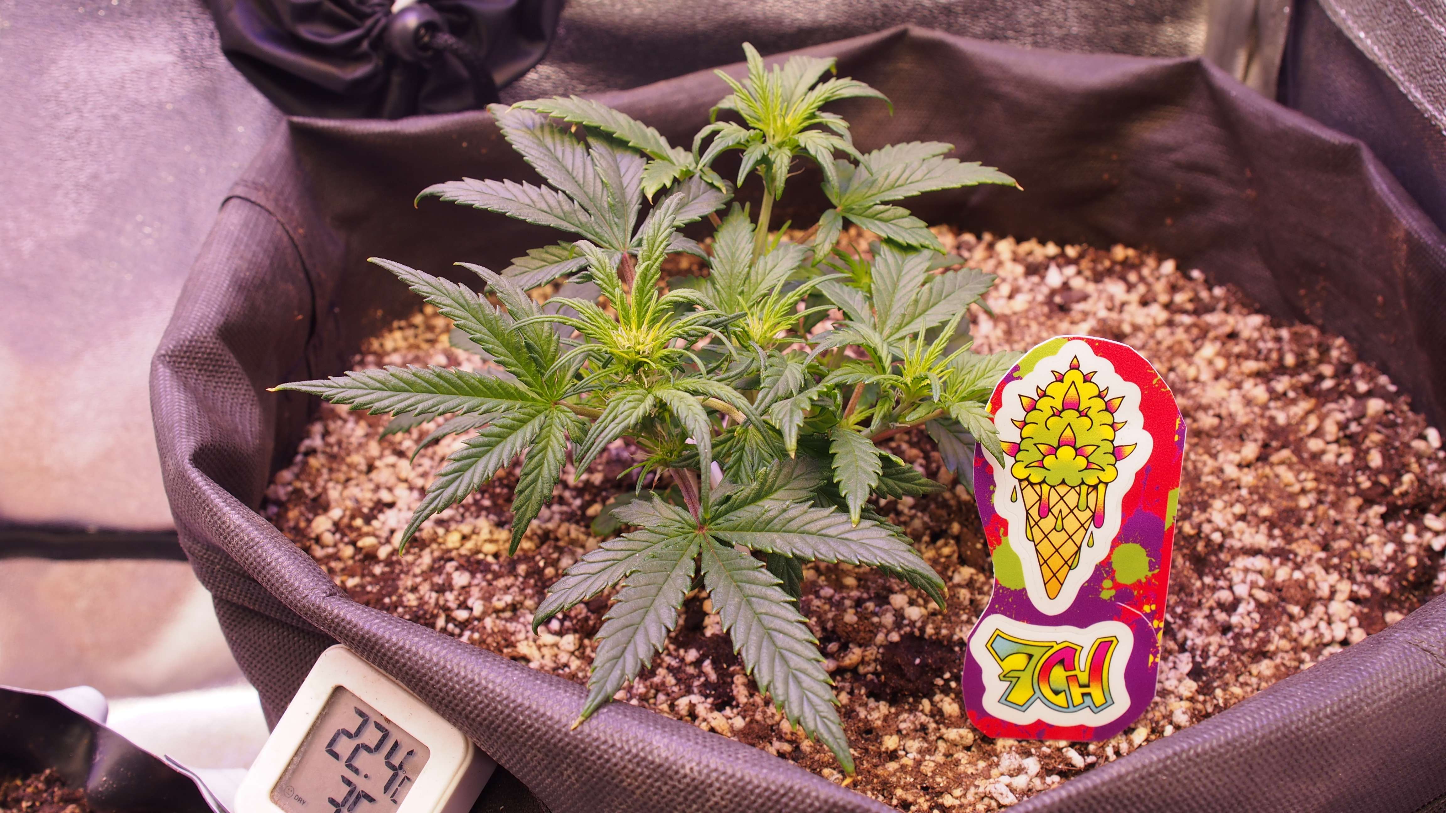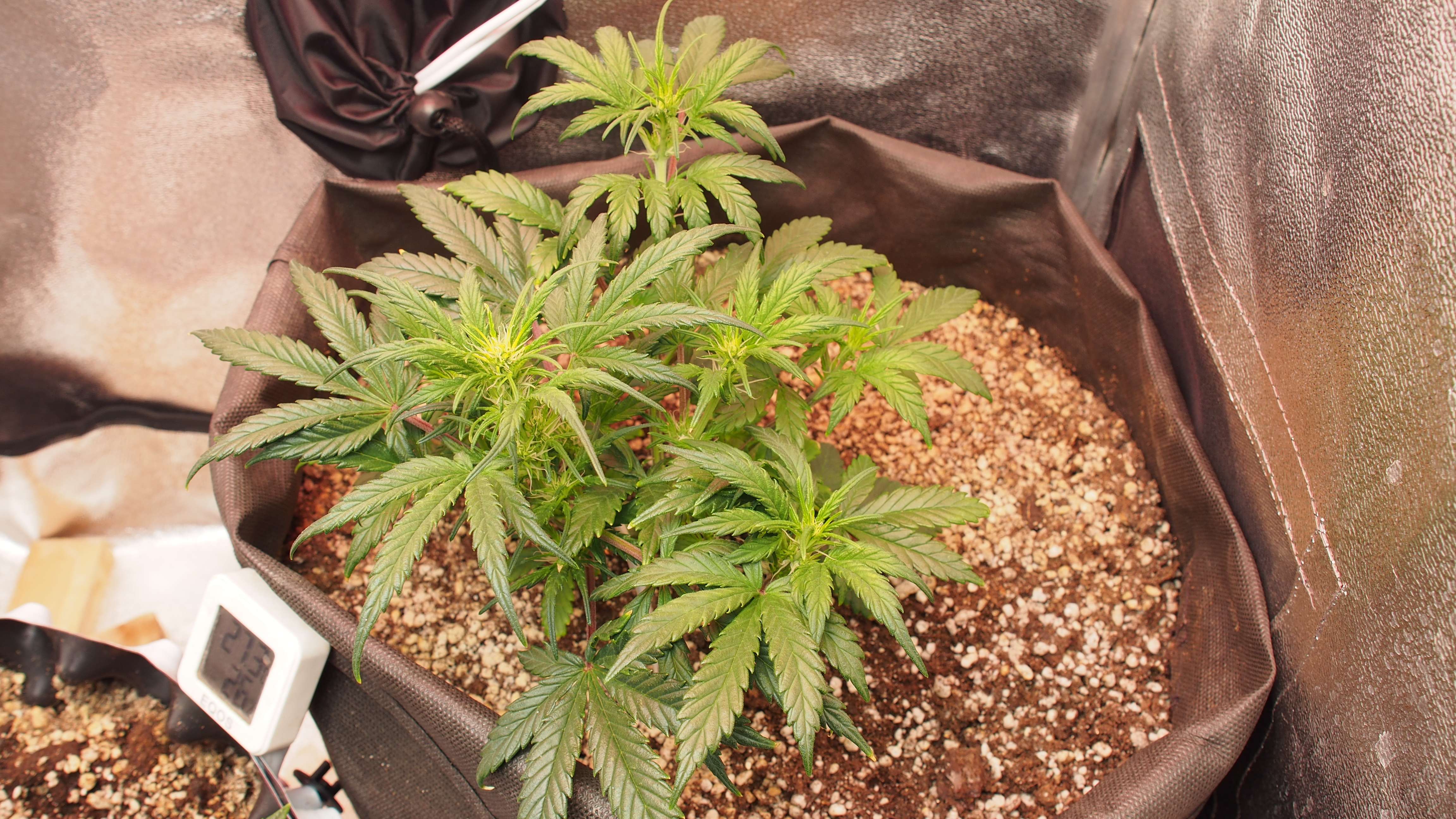 Хроника событий: следим за действиями моего факапа.. но тут есть варианты! )) * 2 недели растишка была в стаканчике для рассады. Стояла под лампой Sanlike от минифермера 7-9 тыс Lux + бустер синий на вегу 445nm. Рост был неспешный. Растишка реагировала на любые поливы стрессово, но не надолго. * после двух недель - пересадка в гроубэг 20 литров. При пересадке было видно, что корневая не особо заполнила даже стаканчик. Пересадка прошла без видимого стресса. * третья неделя: загнул центральную колу. Обнаружил явные признаки предцвета. Рост минимальный. Рассчитывал, что "как обычно" у меня ещё 1,5-2 недели веги, где растишка выстрелит.