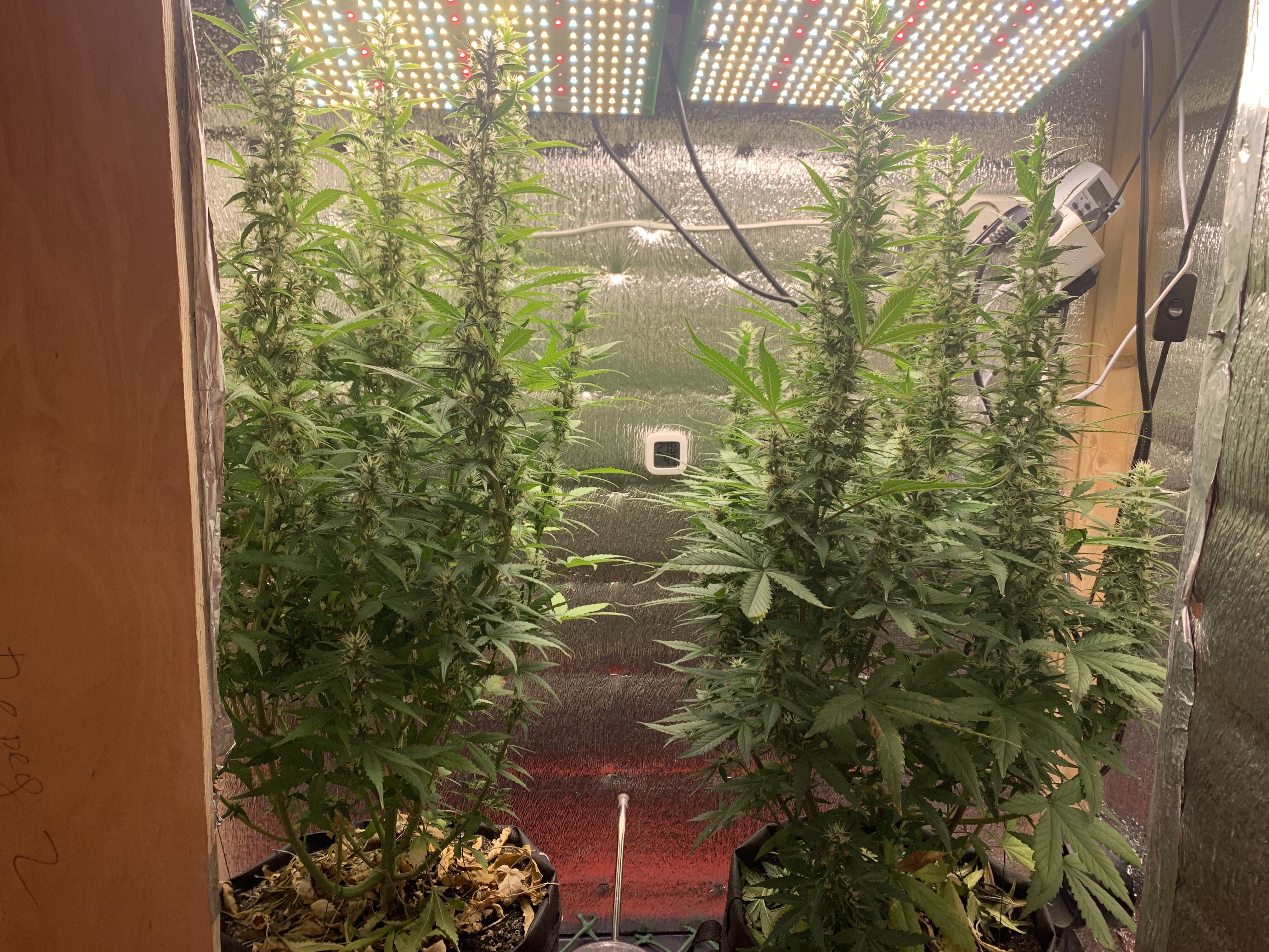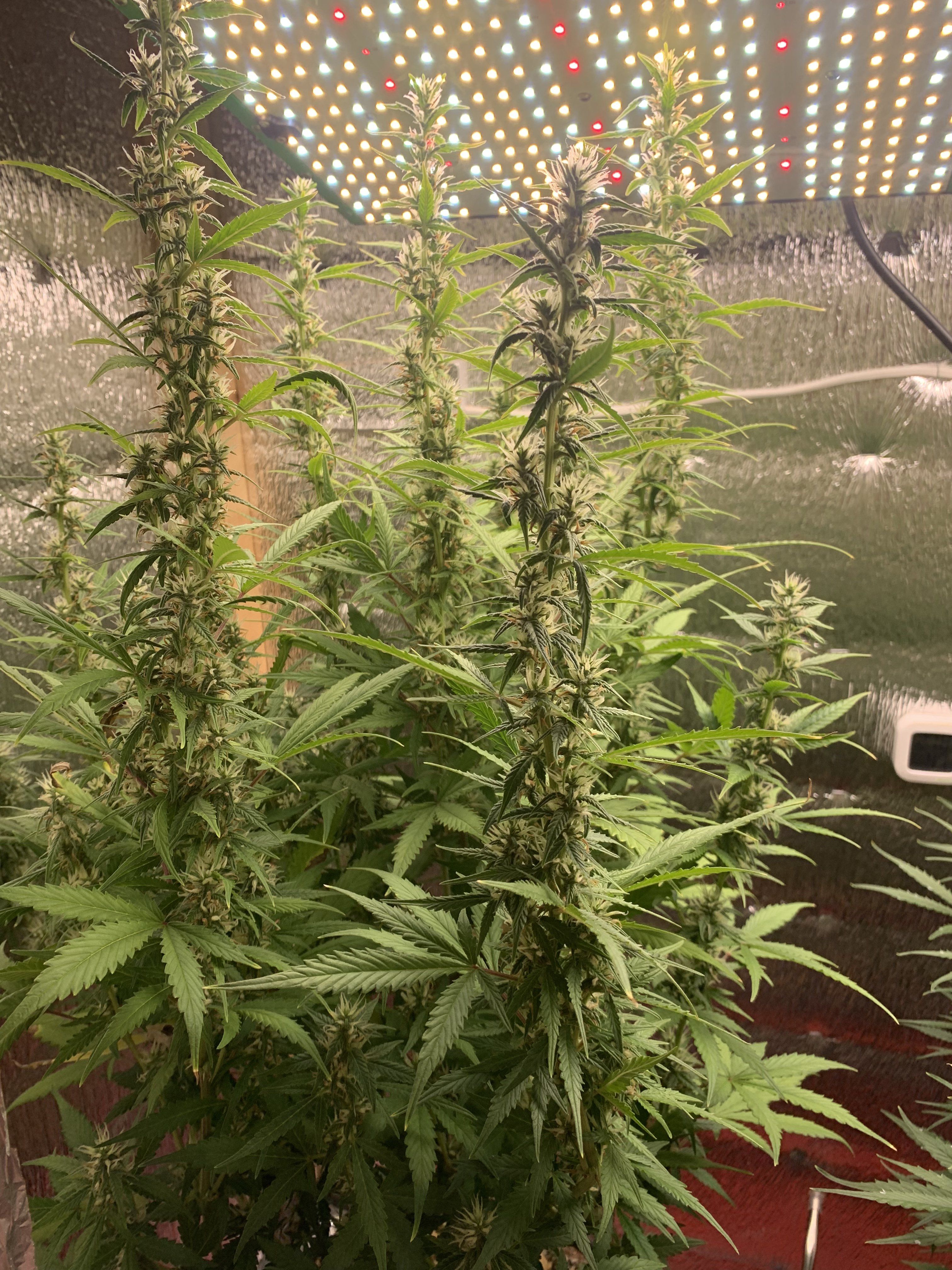 Всем привет 👋, чуть зашёл на форум , всю неделю выдавал ошибку сервера и так началась 8ая неделя , шишки набирают массу , рост не понятно остановился или продолжает расти , но я поворачиваю по мере как кола упрется 😁 фото не делал так как не думал что получится зайти на форум , выложу позже , полив , гроу 4 блум 4 топ-макс 4 хевен 5 алгамик 4 активера 5мл. На два литра воды