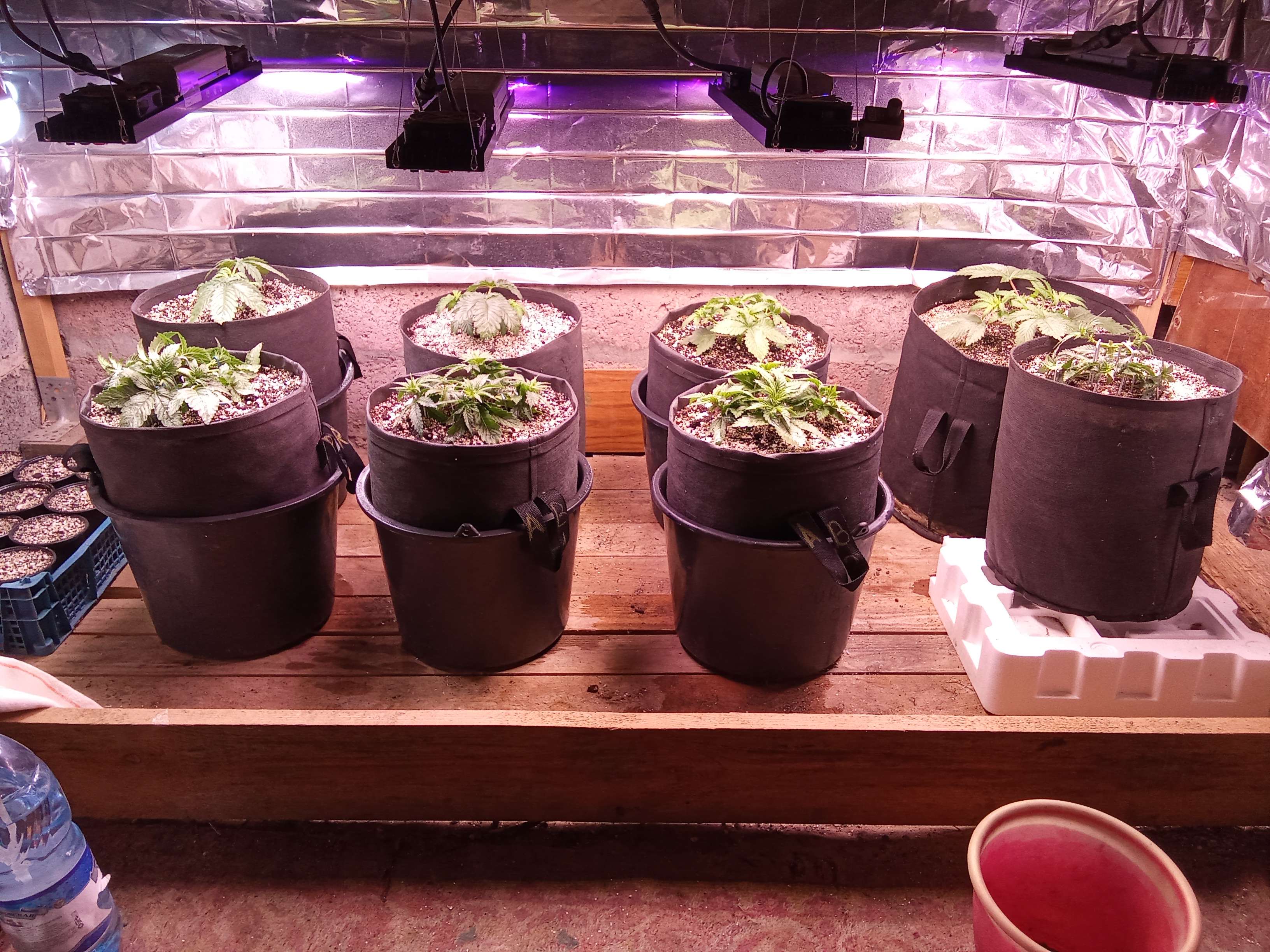 Подошла к концу 5-я неделя нашего грова, пока что все идет по-плану (у меня изначально был какой-то план, и я его придерживался). Единственное что температура за бортом растет (лето ёптить), стабильно 34-35 днем, в боксе стараюсь, чтобы выше 28 не поднималась (бутылки со льдом и емкости с холодной водой, ну и конечно, прохладный душ из пульвика 3-4 раза в день), в принципе, пока справляемся)))