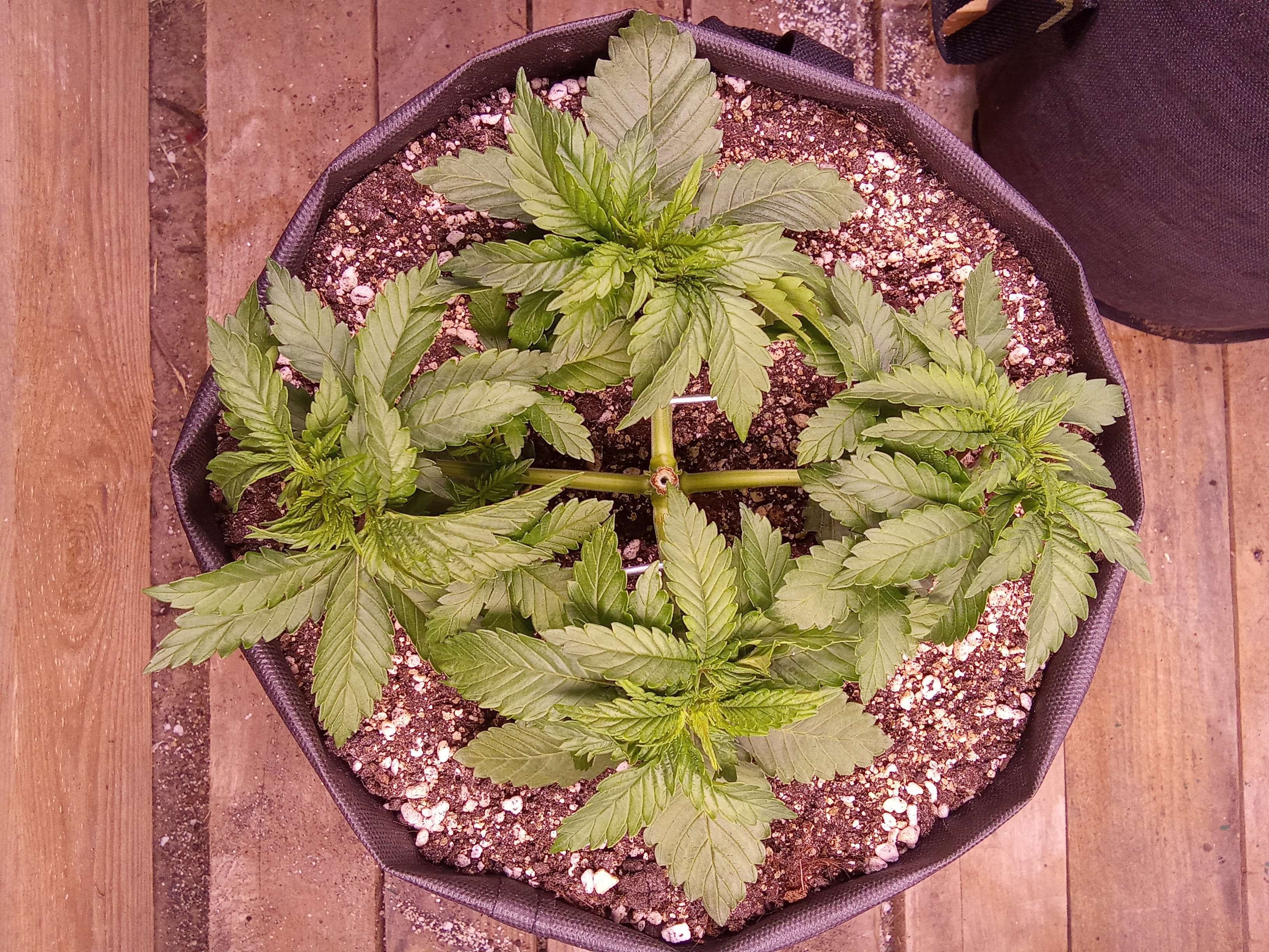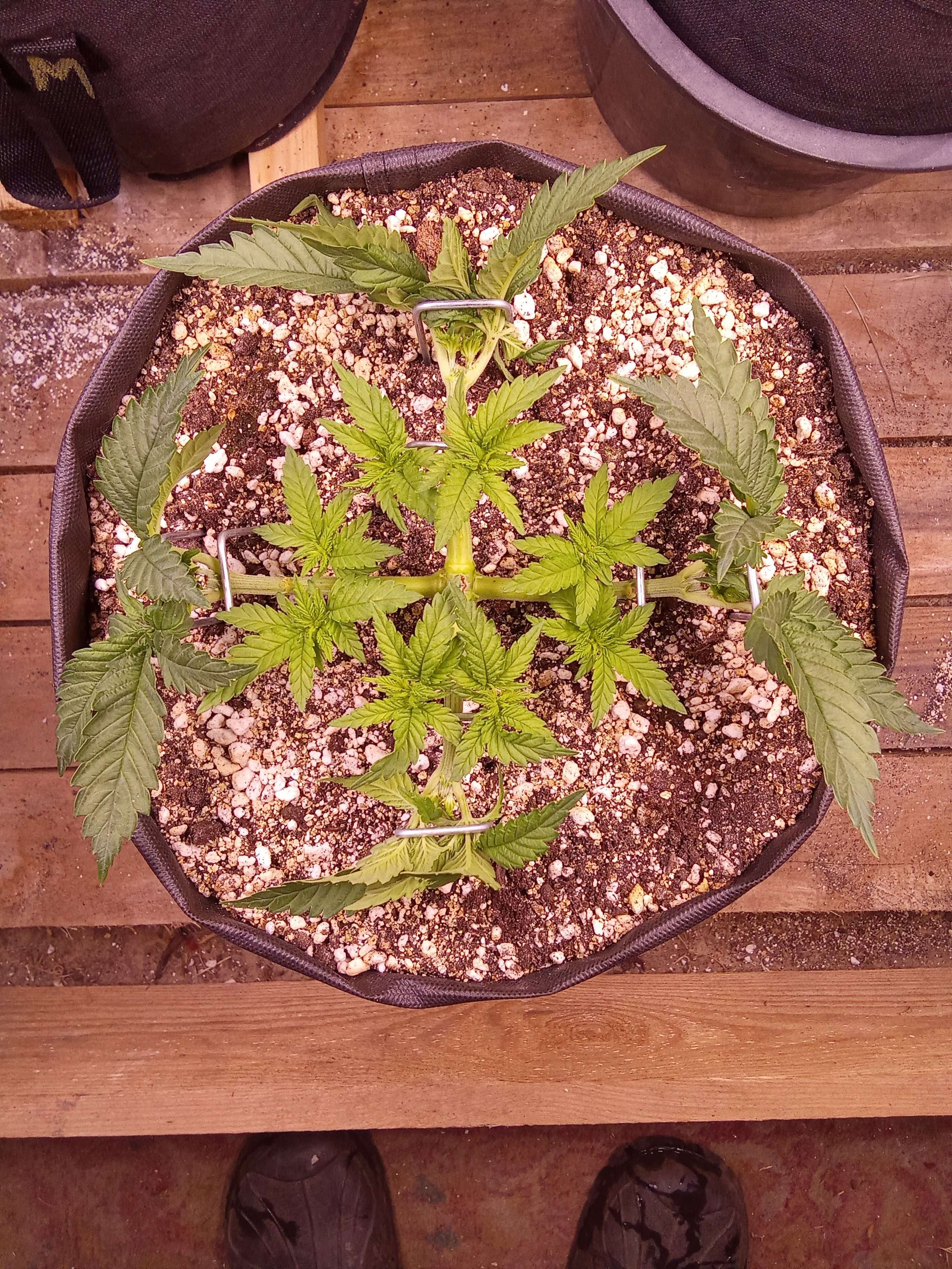 Нам 35 дней от роду. Сегодня сделаем еще дефолиацию и продолжим мейн-лининг. На 1 фото до обрезки, 2,3 и 4 - после.